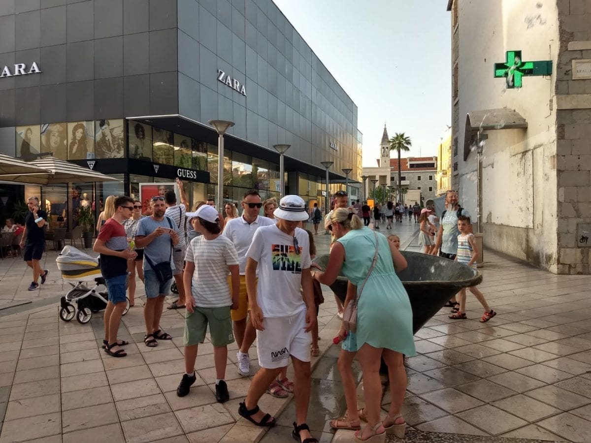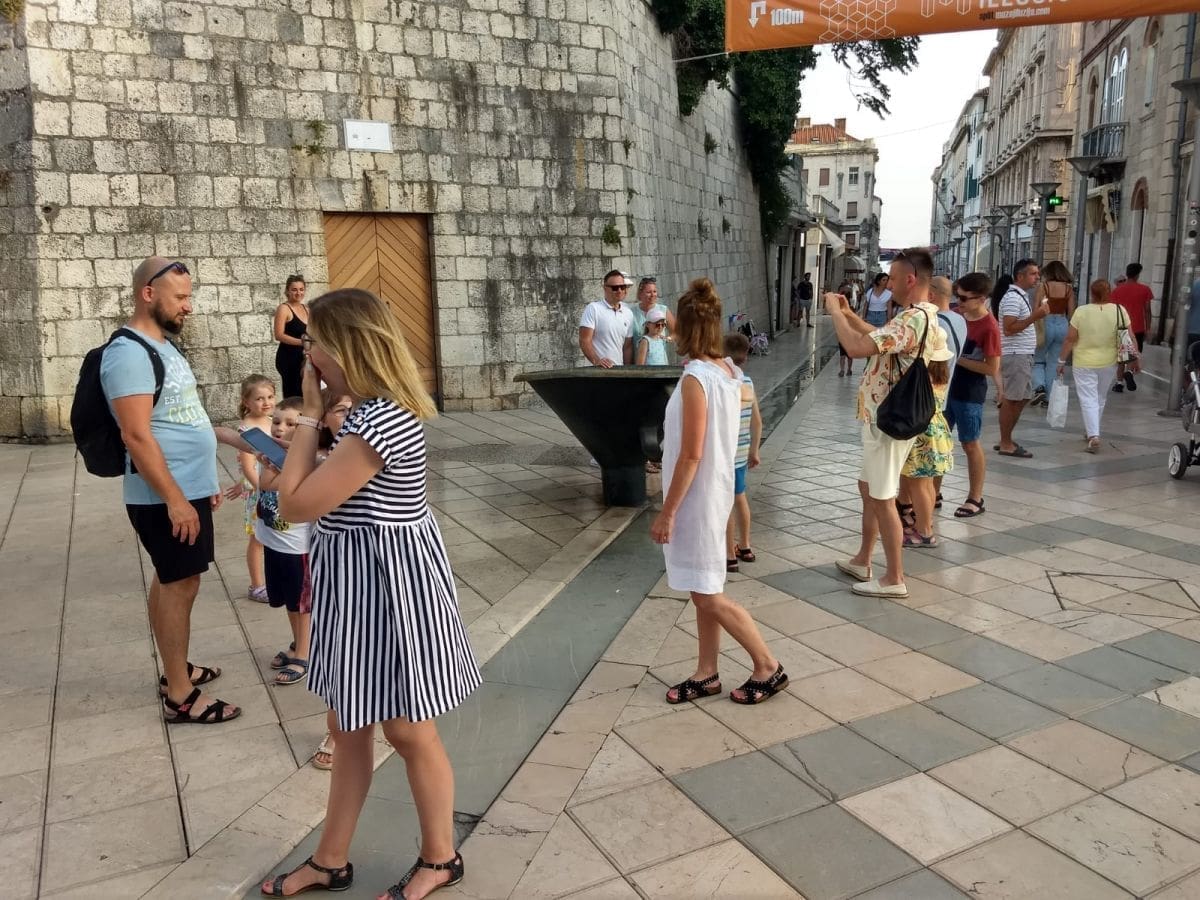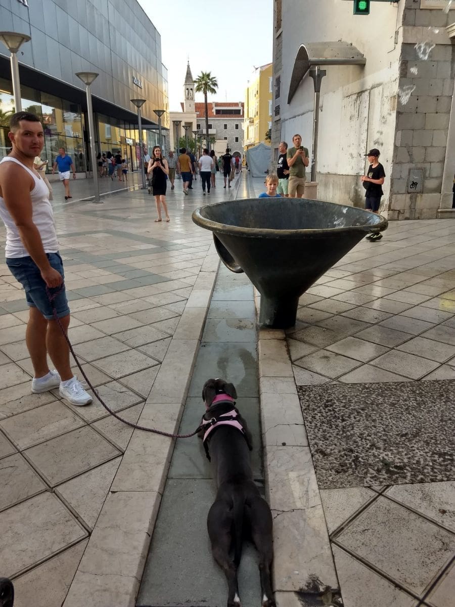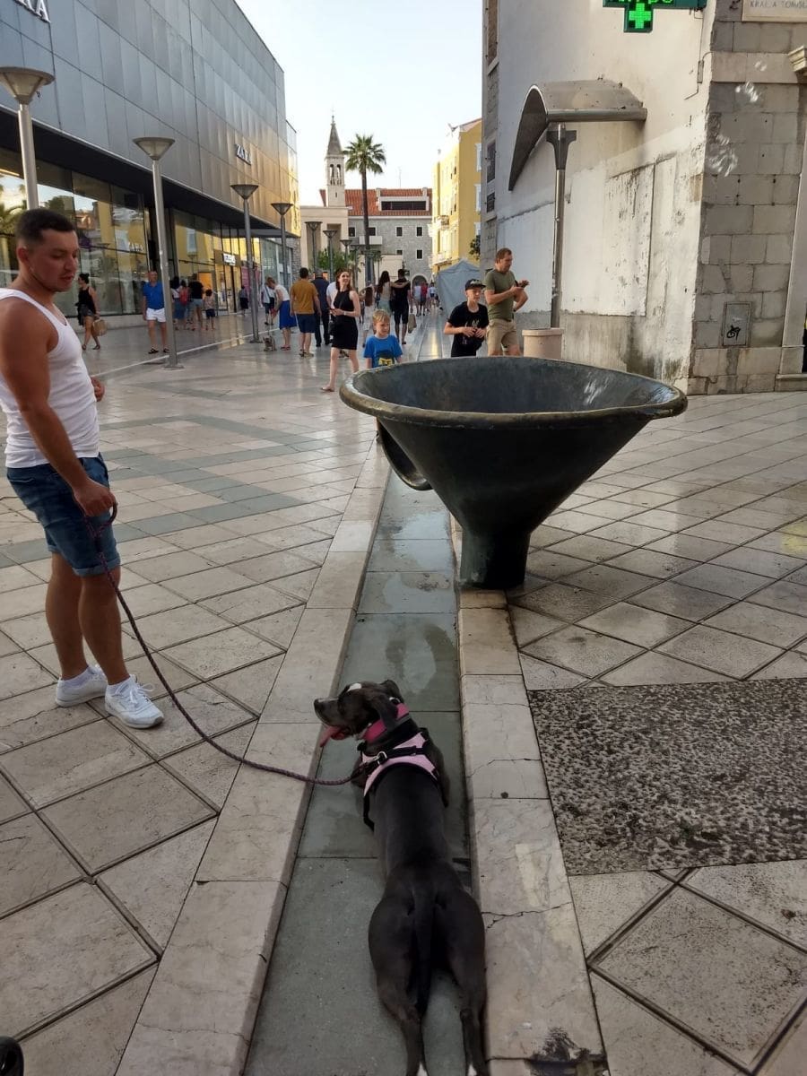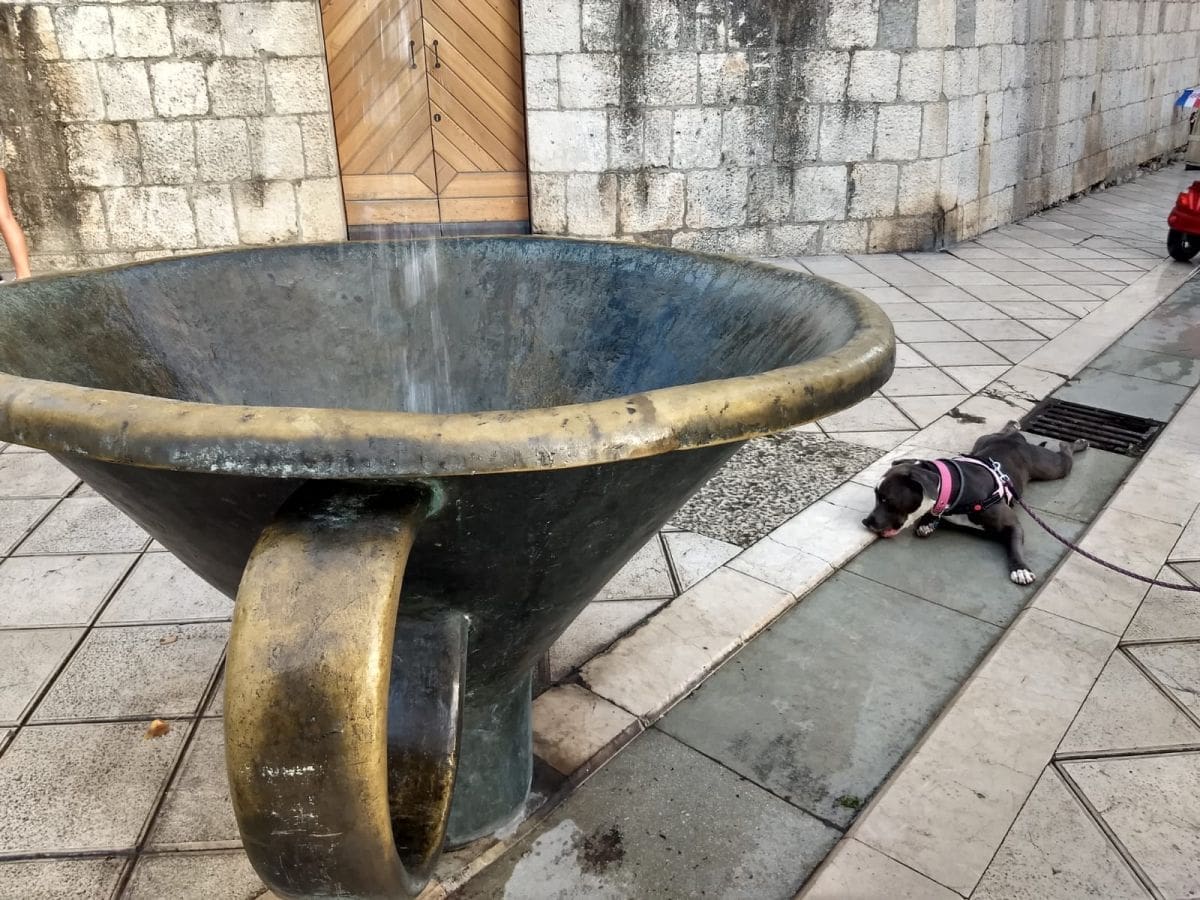 U centru Splita se predvečer mogao vidjeti dobar broj turista, a gotovo svaki turist je žeđ utažio u poznatom lijevku ili pirji u Marmontovoj ulici. Brončana skulptura je prepoznatljiv sadržaj Splita, a otvorena je sada davne 1998. godine.