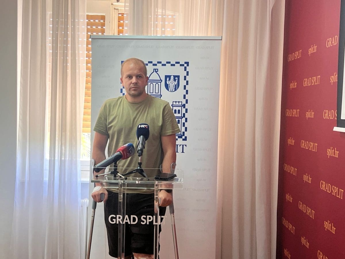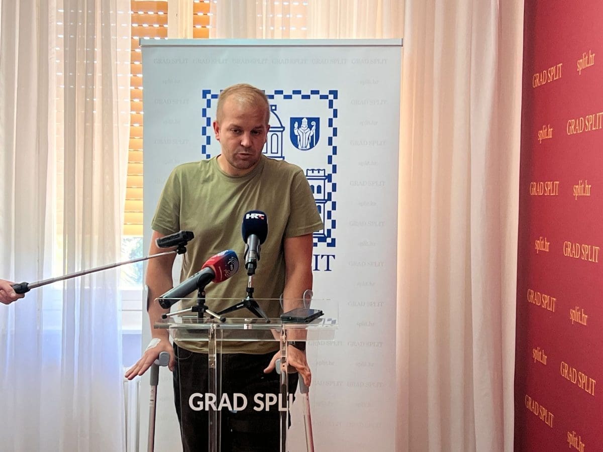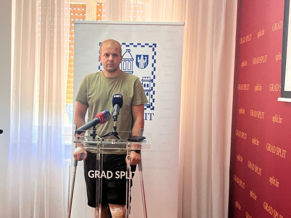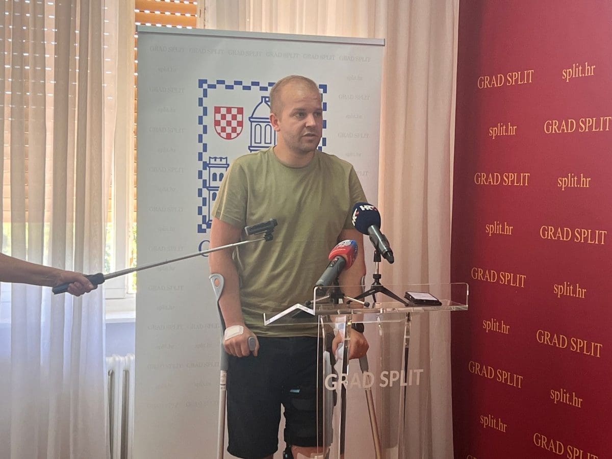 Martin Mladen Pauk (Domovinski pokret) na štakama je došao na sjednicu Gradskog vijeća Grada Splita. Prije dolaska na sjednicu dao je izjavu za medije.