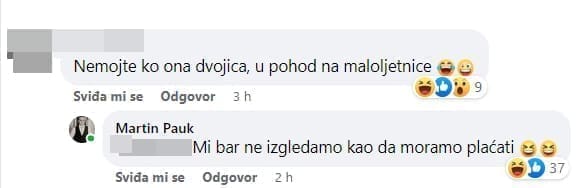 "Nemojte k'o ona dvojica, u pohod na maloljetnice", komentirao je netko ispod objave na što je Pauk odgovorio: