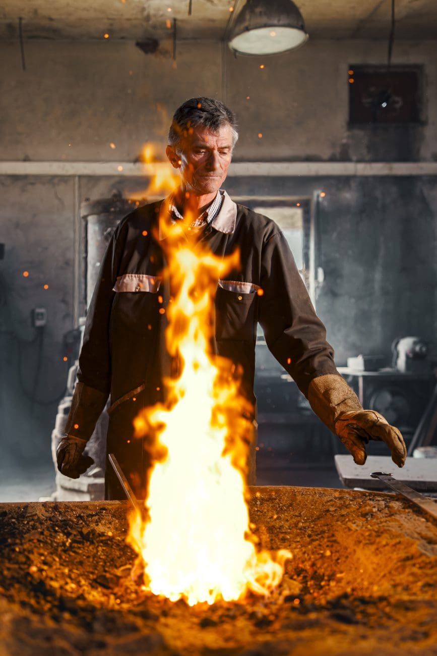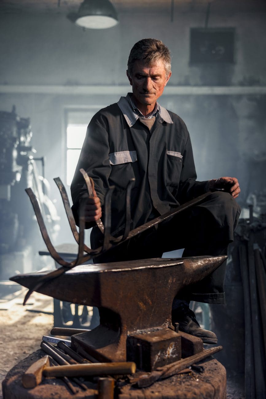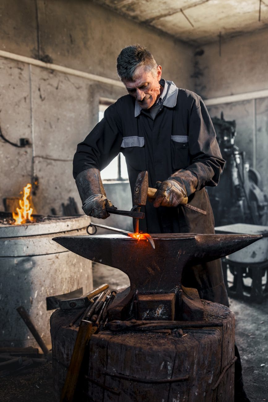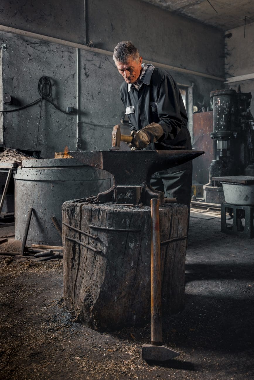 „Svi misle da je kovač samo snaga. A to je dobrim dijelom i osjećaj“, govori Ante dok postavlja komad čelika na nakovanj. „Ako udariš previše — pukne. Ako udariš premalo — ne drži. Moraš znat slušat metal.“