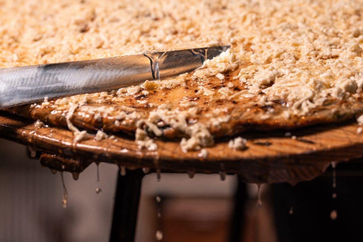 Po plisnacu se potom baci žeravica, ali se mora miješati da tijesto ne zagori. Gornji list će se u jednom trenutku odignuti pa ga je potrebno lagano probušiti da se spusti. Peče se 15 do 20 minuta nakon čega se očisti od žerave i luga te se stavlja na siniju. Bitno je naglasiti da gornji dio mora biti onaj koji je dodirivao podlogu na kominu. Plisnac se potom do kraja očisti, a onda se što prije sve polije litrom sojinog ulja te se stavi kilogram mladog sira. Nakon što se ta smjesa ravnomjerno raspodijeli po čitavoj površini, po njoj se izlije deset jaja koja se prethodno užbate. Potom preko svega polijevamo vrelo ulje da se površina pofriga. Ako ostane puno ulja na površini, plisnac se nagne da se ocijedi nakon čega je spreman za konzumiranje, a najbolje ga je jesti dok je topao“, pojašnjava sa zanosom 74-godišnja Žrnovčanka koja se nada da tradicija izrade ovog specijaliteta neće izumrijeti.