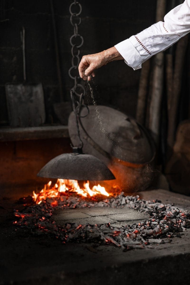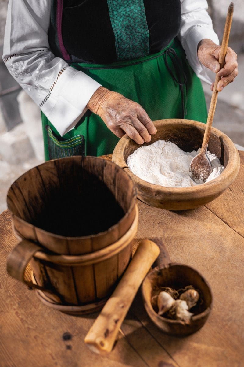 - U drvenoj zdili se zamiša šenično brašno, sol i mlaka voda. Miša se dok se ne pojave mjehurići. Naloži se vatra da se dobro ugori komin. Zatim se smjesa izlije po vrućoj i očišćenoj podlozi te se izravna. Cripnja se pridržava ožegom te se spusti nad izlivenu smjesu, onda se cripnja zagrne žarom. ‘Potituši ga brzo da ne uteče u lug’, kazalo bi se.