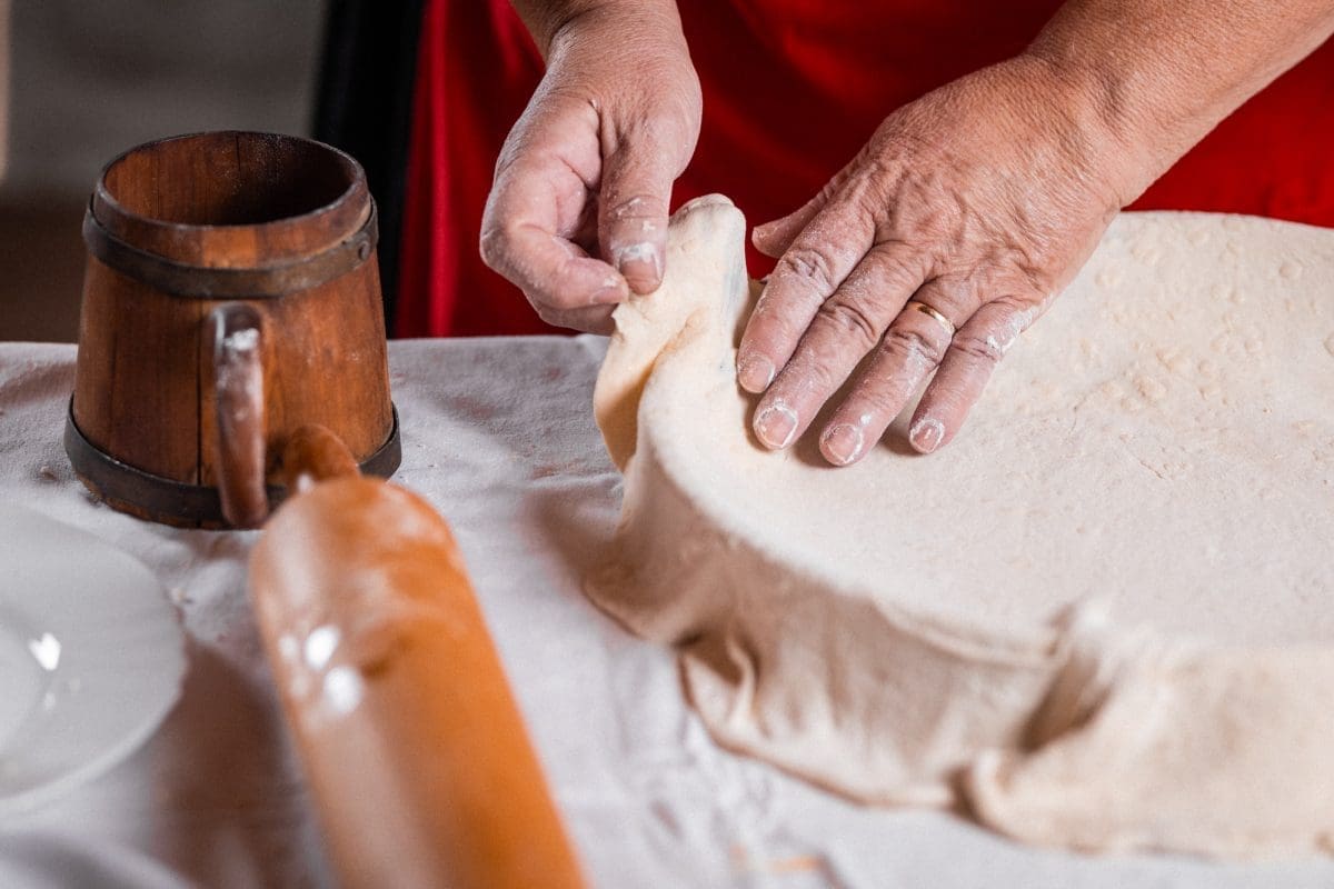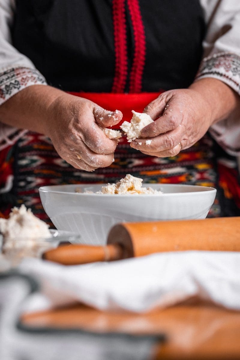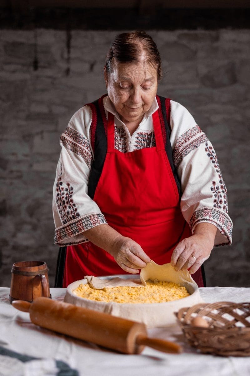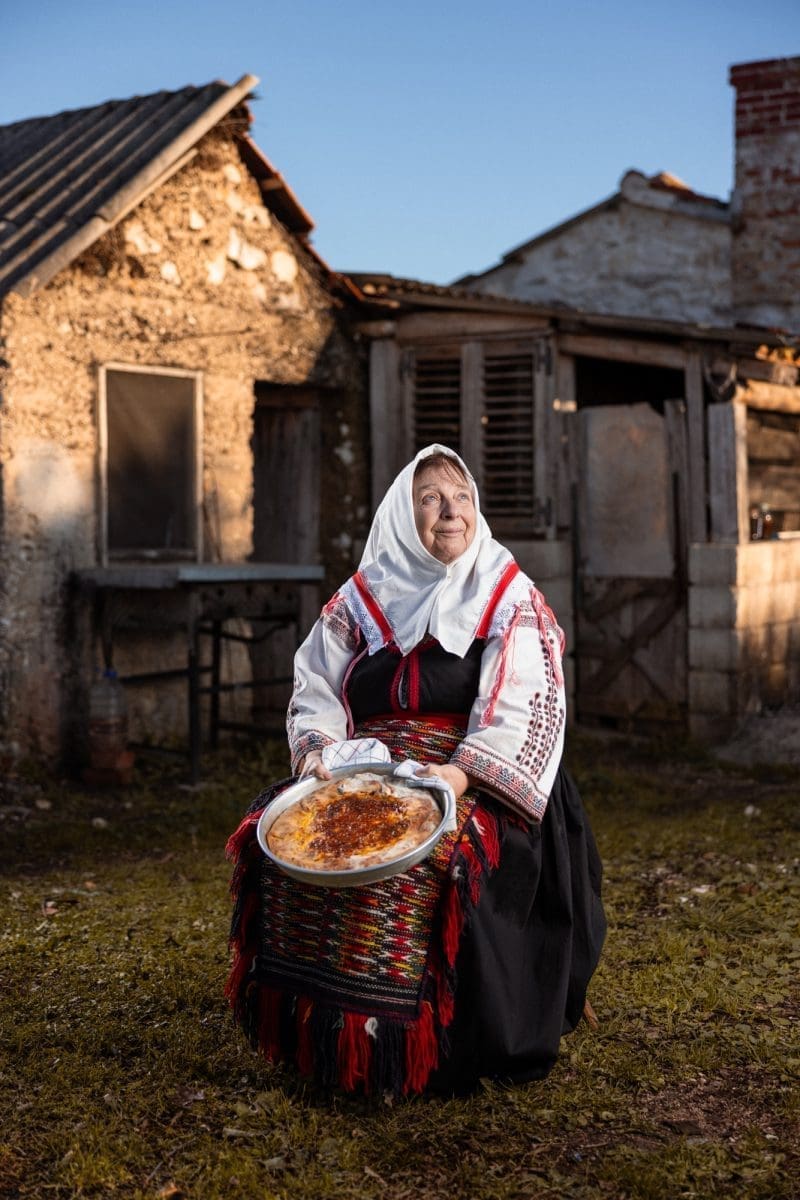 Umijesi se kora, a dok se ona ostavi da malo „odmori”, radi se „fil”. Najbolji sir je starosti 2 do 3 dana jer se onda može trgati rukom. Može se raditi i od starijeg sira, ali onda se trga nožem ili drugačije. Bitno je da se iz sira iscijedi sirutka. Kada se sve izmiješa, sve se stavlja u ovalnu tepsiju, odnosno u sredinu se stavi fil, poravna i izjednači. Jedan dio tijesta u dužini od nekoliko centimetara mora viriti vani, a on se potom vrati unutra. Sredina se premaže jednim žumancem da bude tamniji od kore. Sve se stavlja pod peku i prosječno peče 45 minuta. Nakon toga se izvadi ispod peke, stavi da se malo ohladi, izvadi iz tepsije te je spreman za konzumaciju - govori naša kuharica koja nam je demonstrirala svu vještinu izrade ovdašnjeg specijaliteta. Vjerojatno je ispekla na tisuće prisnaca za koje ni u šali ne voli da ih se uspoređuje s pitom.