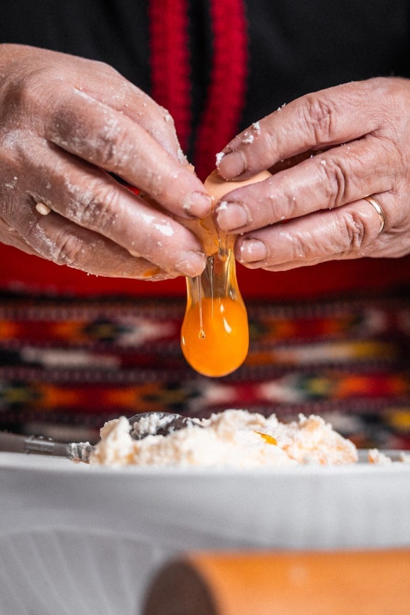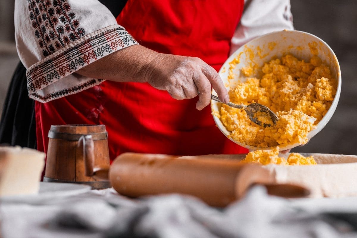 - Cijeli ovaj kraj bio je poznat po uzgoju krava, ovaca i koza, a prisnac se može raditi od bilo kojeg sira od ova tri mlijeka. Prije je puno zastupljeniji bio ovčji sir. Inače, prisnac se radi od vrlo kvalitetnih sastojaka pa se u stara vremena radio vrlo rijetko. Kada bi se znalo da će se raditi, skupljao bi se skorup s mlijeka 7-8 dana i stavljao u teglu. Tijesto se napravi od glatkog brašna, mlake vode i malo soli. Nije potrebno puno soli jer je dodaje sir škripavac koji je već slan. U sve ide 5-6 jaja, ne više da jaja ne preuzmu okus nad sirom. Netko doda šaku pure ili pšeničnog brašna, a ima ih koji dodaju šećer, tako da prisnac kod njih bude slatki kolač. Ja ne stavljam ni kukuruzno brašno ni šećer. Inače, u stara vremena nije bilo ni šećera, pa čak ni soli onoliko koliko si htio.