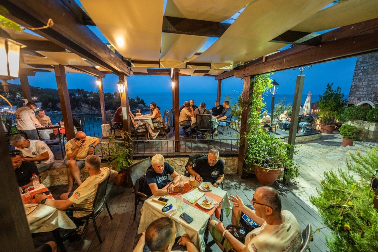 Lijepa je bila rana ulcinjska večer. Na zapadnom horizontu vidjela se oblačna granica nadolazeće promjene vremena, na sjeveroistoku udaljene albanske planine, a pred nama predivna jadranska pučina. Naš domaćin Jozo priredio je večeru za sve sudionike rallyja, svi su mogli birati riblji ili mesni meni, a večera je bila začinjena glazbom uživo. Da je naše gostovanje u Ulcinju podiglo velik interes, svjedoči i dolazak dogradonačelnika Petra Delića, a s nama je bio i Pavle Pepđonović, jedan od organizatora već poznatog sportskog događaja u ovom gradu – Mundijala prijateljstva. Ova tradicionalna manifestacija održat će se 27. rujna.