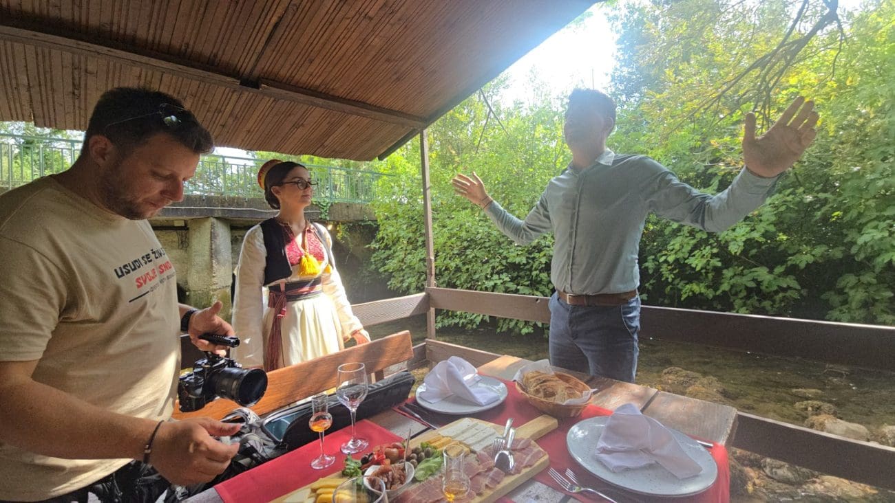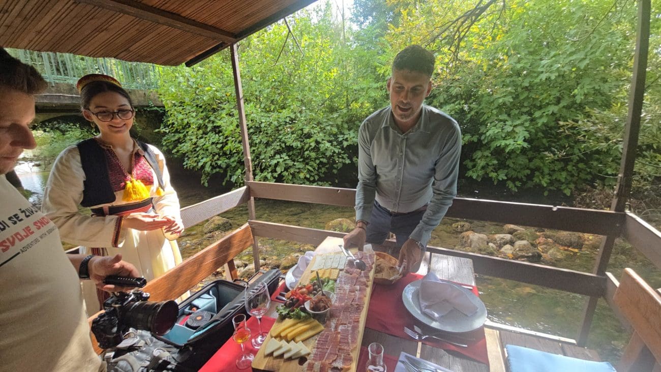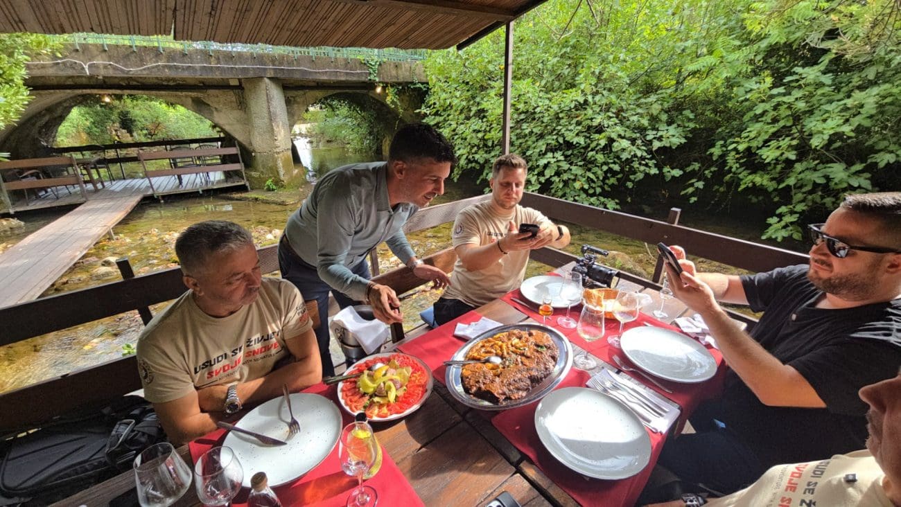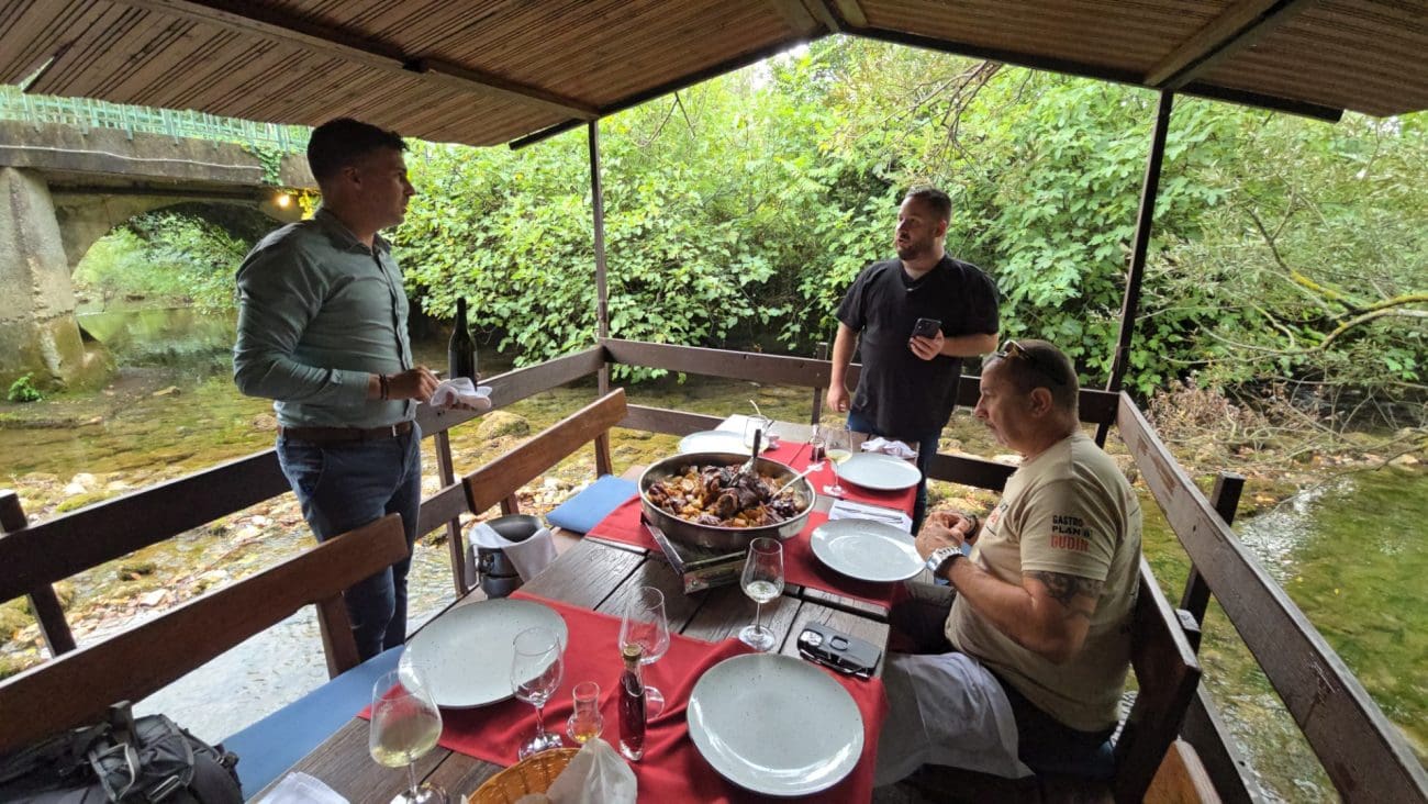 Nakon dugog i krajnje napornog puta kroz Crnu Goru, čekao nas je ručak u konobi Vinica Monković u Ljutoj. Ovaj predivni objekt na rijeci Ljutoj nakon svega doimao se, bez imalo pretjerivanja, poput raja. Dok se većina smjestila u objekt, mi smo sjeli u izdvojeni dio, malu baštu na samoj rijeci. Već se po predjelu vidjelo o kakvom objektu se radi. Vrhunski sir, najbolji mogući pršut, vrhunska domaća vina.