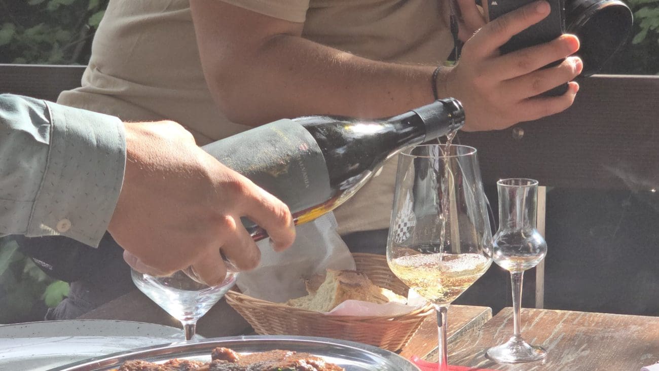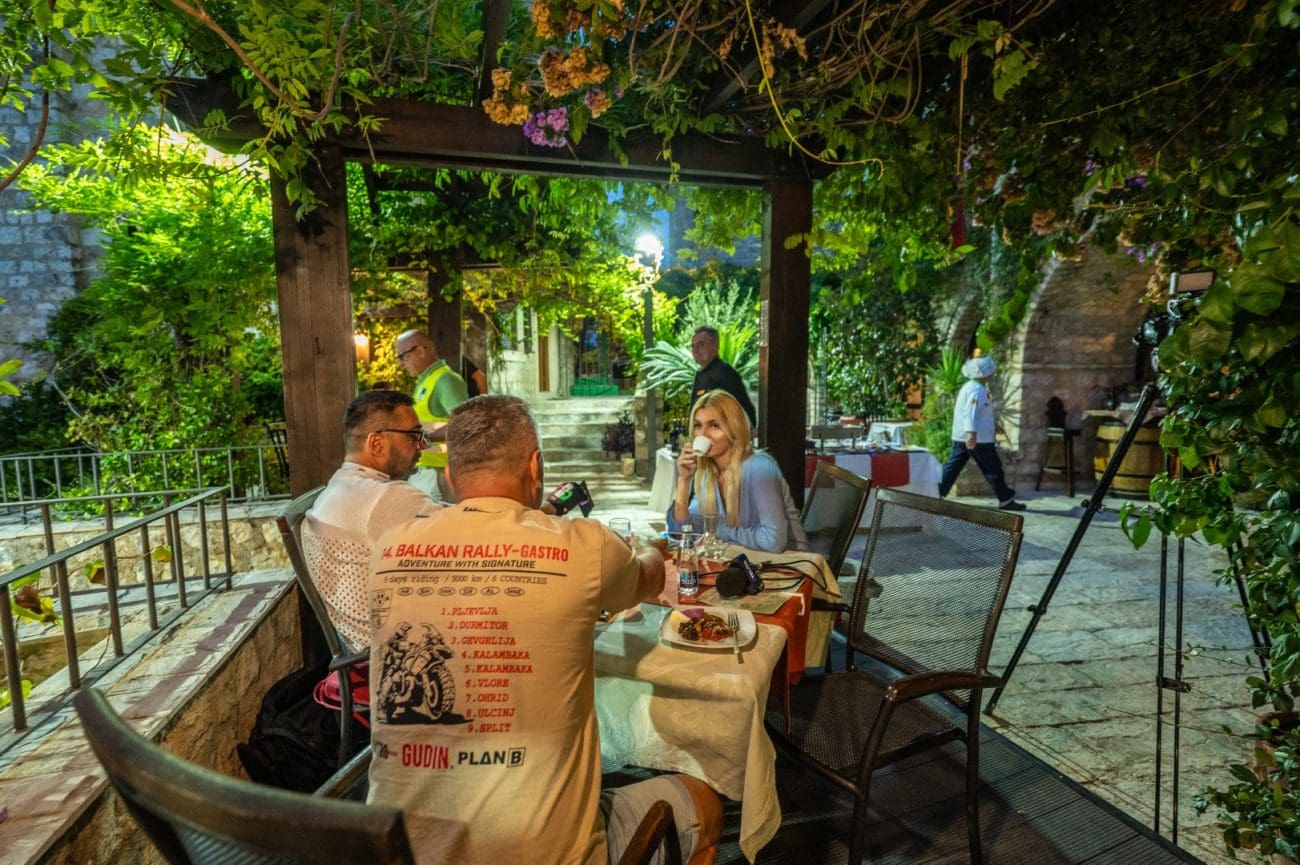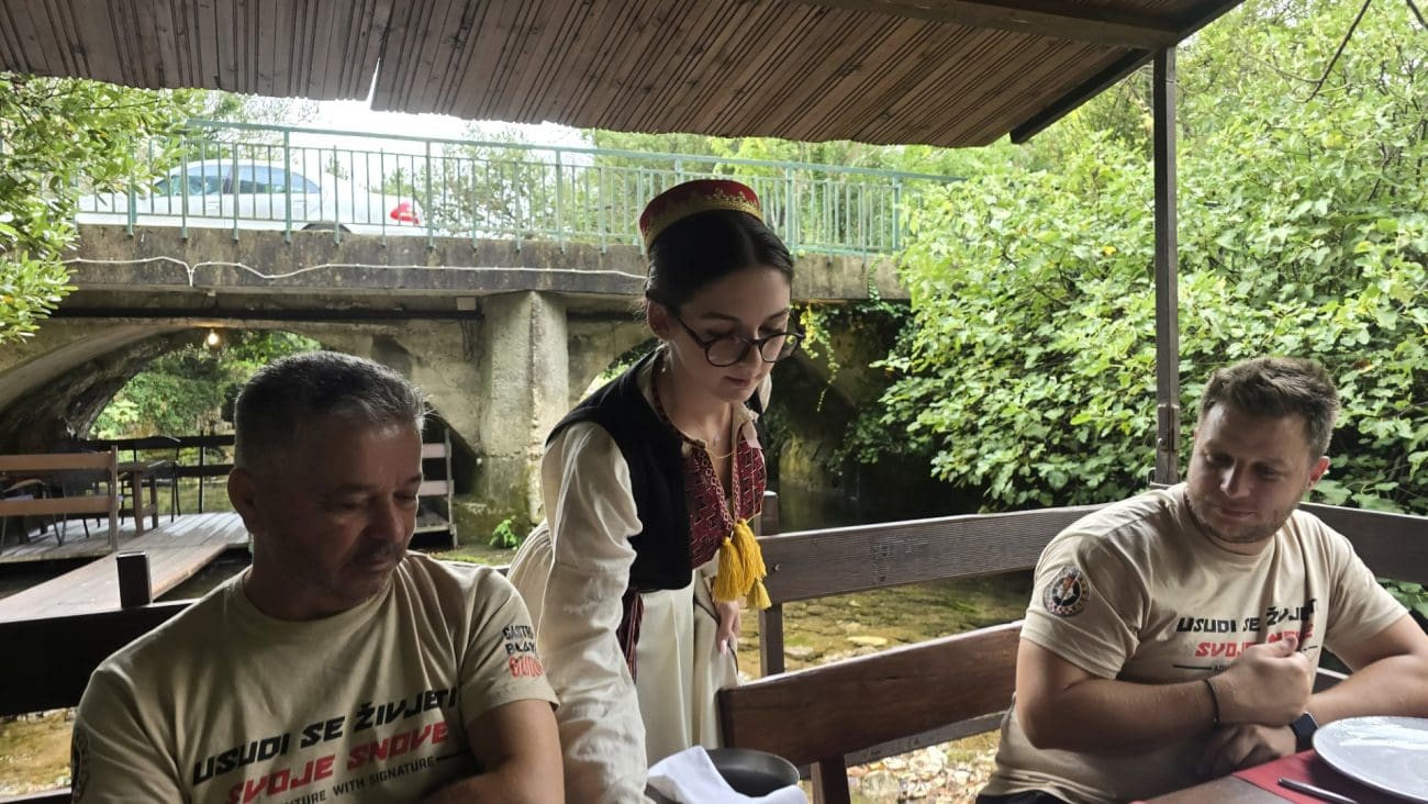 Nakon dugog i krajnje napornog puta kroz Crnu Goru, čekao nas je ručak u konobi Vinica Monković u Ljutoj. Ovaj predivni objekt na rijeci Ljutoj nakon svega doimao se, bez imalo pretjerivanja, poput raja. Dok se većina smjestila u objekt, mi smo sjeli u izdvojeni dio, malu baštu na samoj rijeci. Već se po predjelu vidjelo o kakvom objektu se radi. Vrhunski sir, najbolji mogući pršut, vrhunska domaća vina.