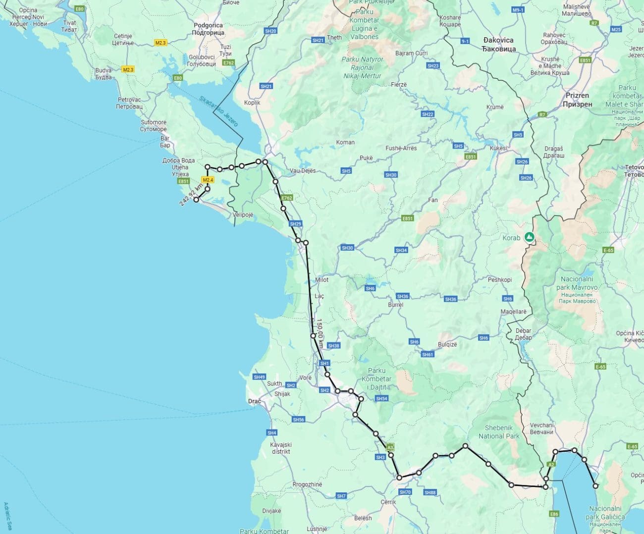 Ulazak u ovu zemlju opet je bio patnja zbog duljine čekanja na granici. Radi se o zajedničkom albansko-makedonskom graničnom prijelazu, gdje se par desetaka metara reda zna čekati i više od pola sata. Konačno ulazimo u Albaniju, dok nas i dalje prati stabilno vrijeme. Vrućine su dale „gasa“ pa nas u dolini povremeno dočekuje i više od 35 stupnjeva u hladu.