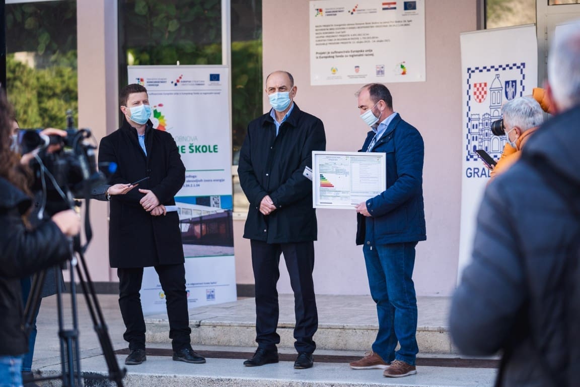 - S ovom energetskom obnovom očekuje se ušteda u potrošnji električne energije od 65 posto, a zgrada je iz energetskog razreda "C" prešla u razred "A". Također će škola s fotonaponskim modulom proizvoditi vlastitu električnu energiju, a ono što se ne potroši za potrebe škole vraćat će se u mrežu - kazao je Anto Krželj, voditelj projekta energetske obnove.