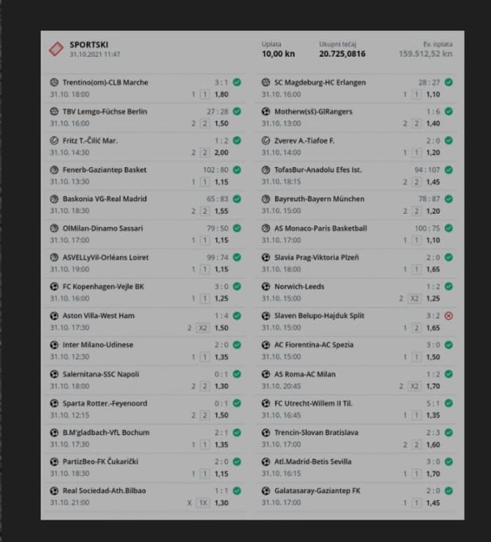 Dobitak na ovom listiću bio je nestvarnih 159 tisuća kuna! I samo ga je Hajduk zeznuo. Nesretni fan sada se nada kako će izvući 500 kuna od SuperStative, odličnog noviteta koji je ubacila kladionica SuperSport. Pogledajte listić ispod teksta i uvjerite se kako imamo pehista godine. Hajduče, pošalji čovjeku barem dres od Livaje…