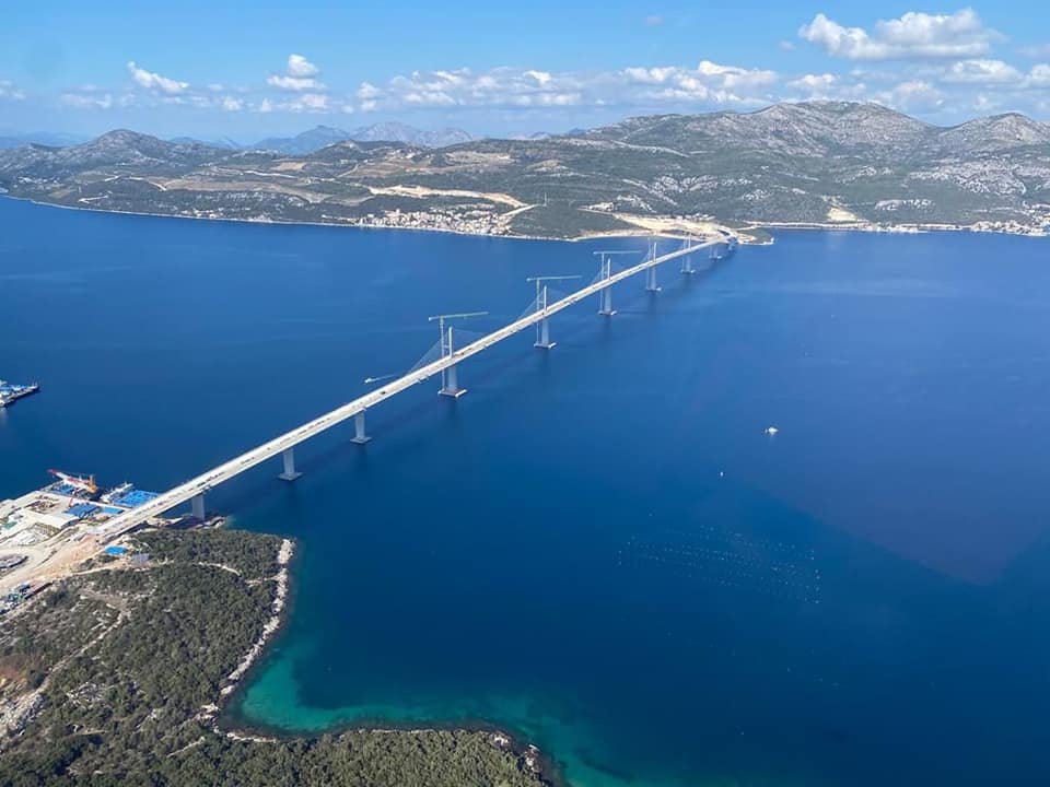 U srpnju 2021. godine postavljen je posljednji segment Pelješkog mosta.