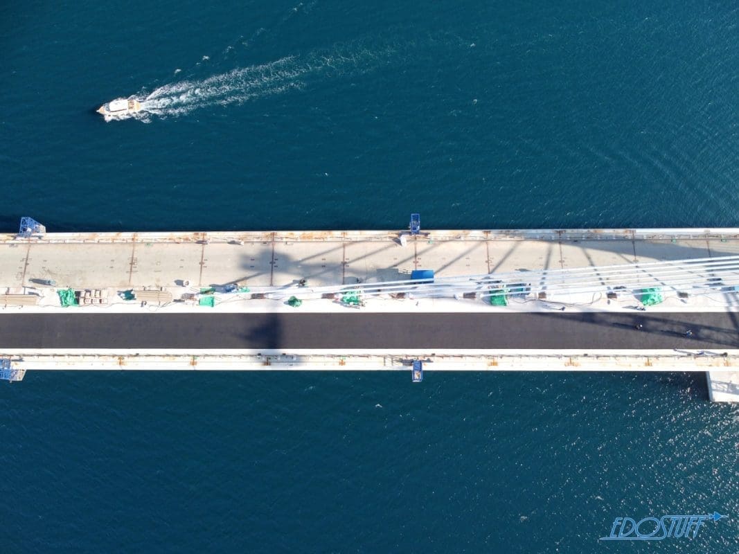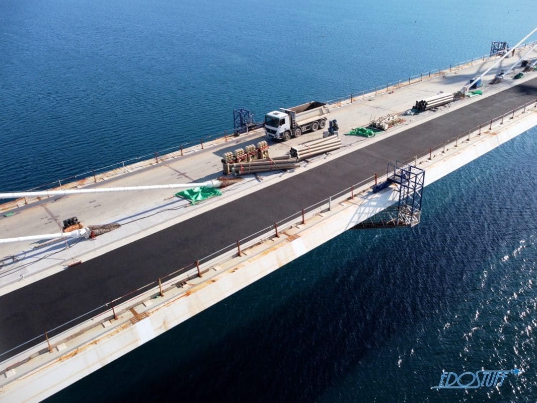 Asfaltira se trak po trak, a sve bi trebalo biti pokriveno do kraja idućeg mjeseca. Time će se most “udebljati” za dodatnih 7 i pol tisuća tona, nakon čega će konstrukcija poprimiti svoj konačni oblik po kojem će prva vozila prelaziti na proljeće.