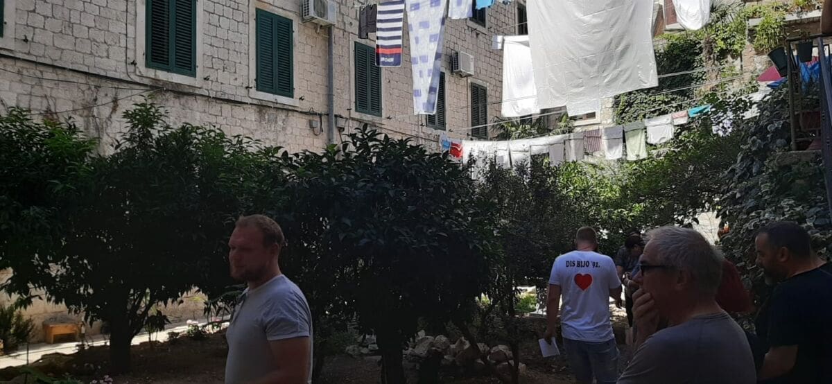 "Svi ste vjerojatno upoznati s posljednjim događanjima oko kultnog getskog vrtla, svojevrsne bitke okolnih stanara koji Grad žele natjerati da preuzme brigu o vlastitoj javnoj površini i gradskih službi koje to uporno odbijaju. No, drami se nazire kraj. Sretni smo vam javiti vijest da je dogovor napokon postignut! Umjesto da rade svoj posao, gradska vlast je po navici odlučila stanare Dominisove udobrovoljiti polovično-privremenim rješenjem - prvom i jedinstvenom 'getskom fontanom'", početak je zanimljive poruke koja je privukla brojne sugrađane da povire što se danas događalo u splitskom Getu.