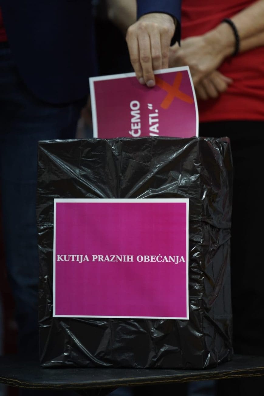 "Danas ćemo se malo osvrnuti na ono na što se politika nažalost svodi, a to su lažna obećanja. Mogli ste ih čuti u ovoj kampanji jako puno. Mi se nećemo osvrtat na obećanja nego ćemo se osvrnuti samo na onaj dio - zašto gradonačelnik nikad nije htio ići na sučeljavanja, zašto je izbjegavao pričati o rezultatima i programima i zašto ga je u konačnici ona statistika proglasila gradonačelnikom velikog grada koji je najmanje ostvario u svom mandatu od onoga što je obećao. Statistika kaže 4,6 posto ostvarenog što je poražavajuće i za neku općinu, a kamoli za drugi grad u državi", kazao je Matijević pa stavljao u kutiju papire na kojima je naveo - GUP, priuštive stanove, Centar za autizam, građanski odgoj u školama, uređenje Pazara i Hrvojeve ulice, iseljenje iz Banovine,....