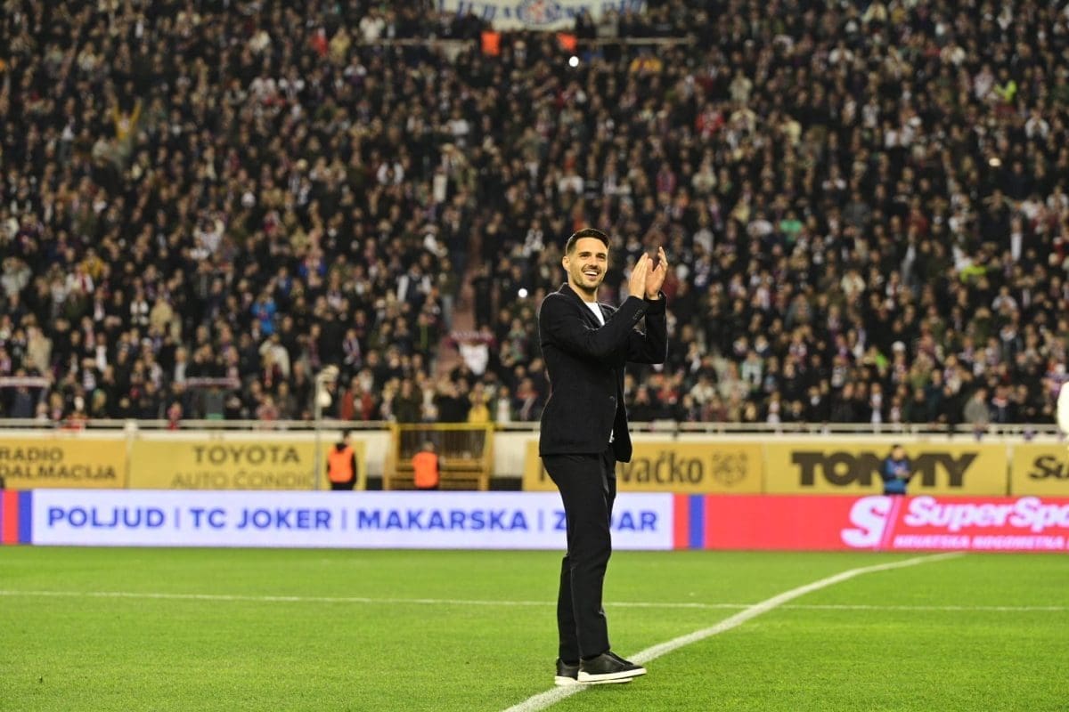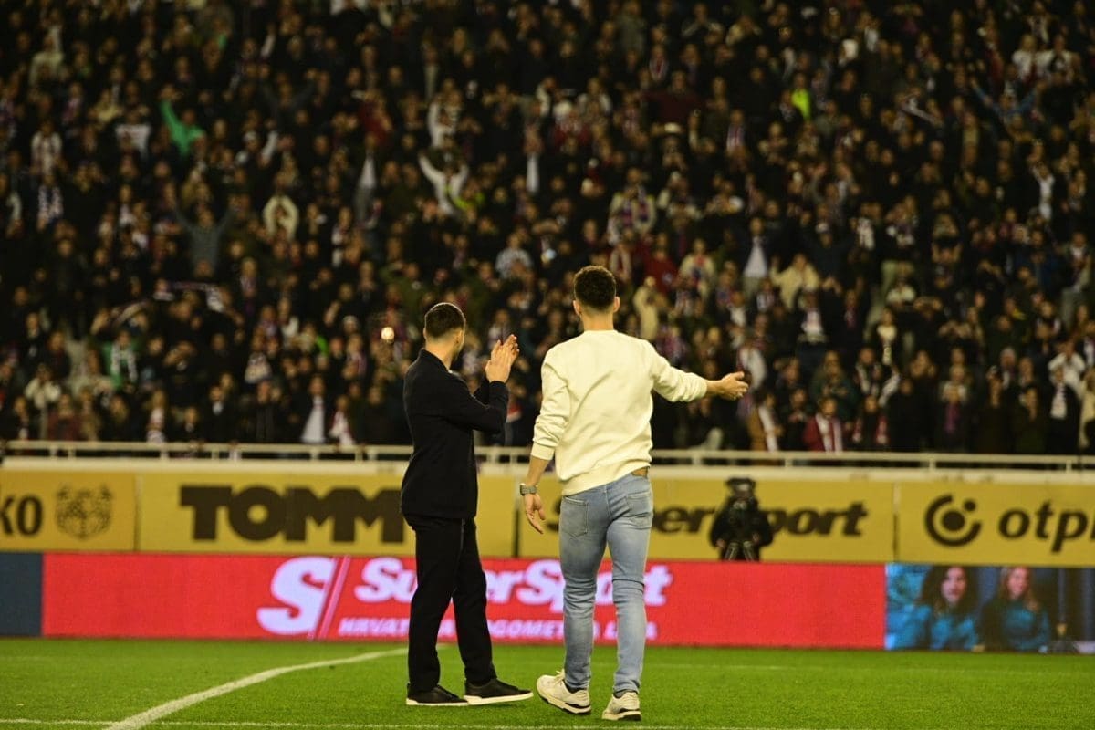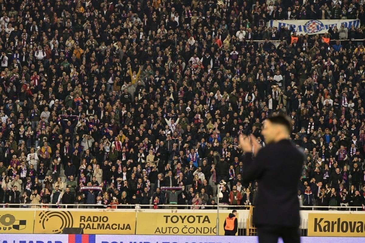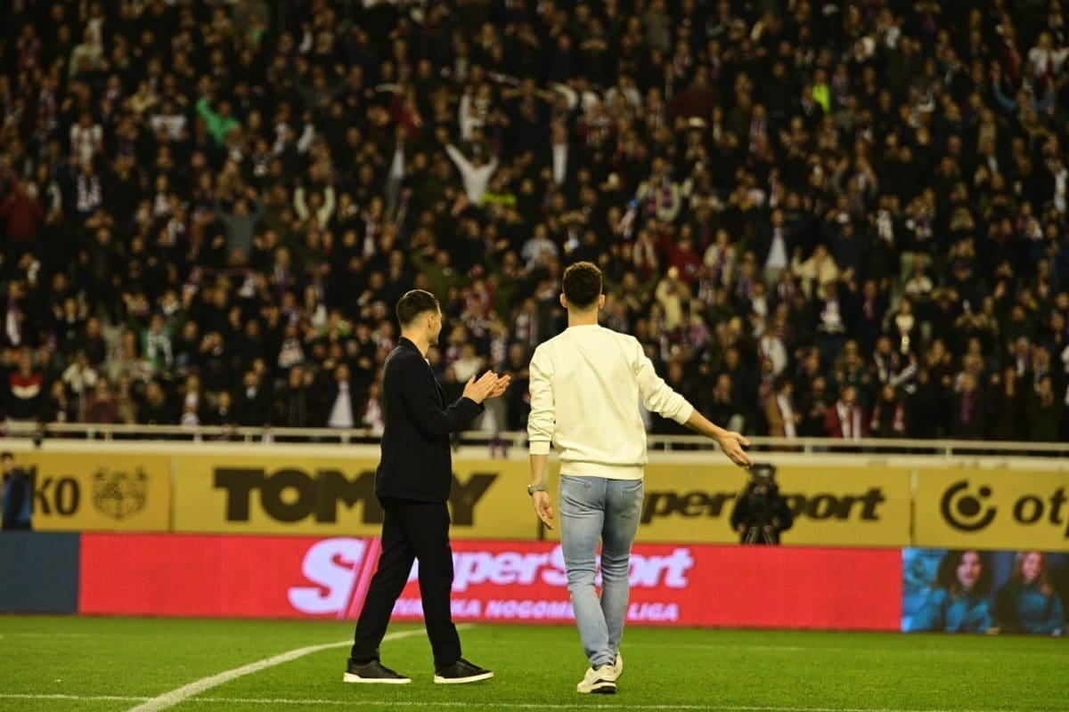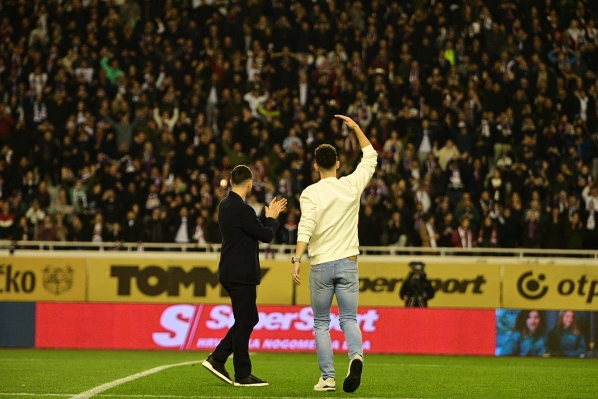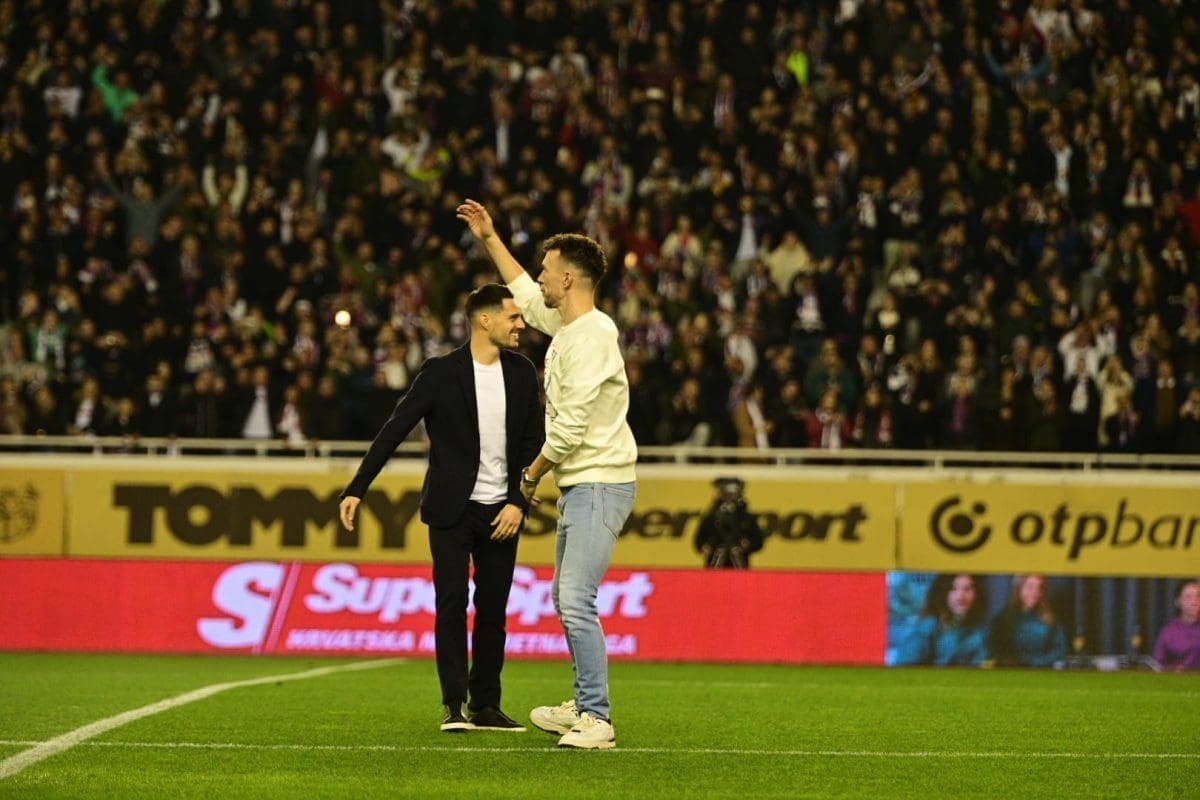 Prije samog početka susreta, povratnik u redove Hajduka, Ivan Perišić izišao je u trenerski prostor i zaradio ovacije cijelog Poljuda. Perišić je potom pred sam početak susreta istrčao na travnjak, do centra Poljuda i zaradio ogromne ovacije. Pridružio mu se Josip Brekalo koji je također pridobio simpatije publike uz pjesmu „ruke ćemo skupa za Bile dići / ko jedno srce za Hajduk ćemo biti".
