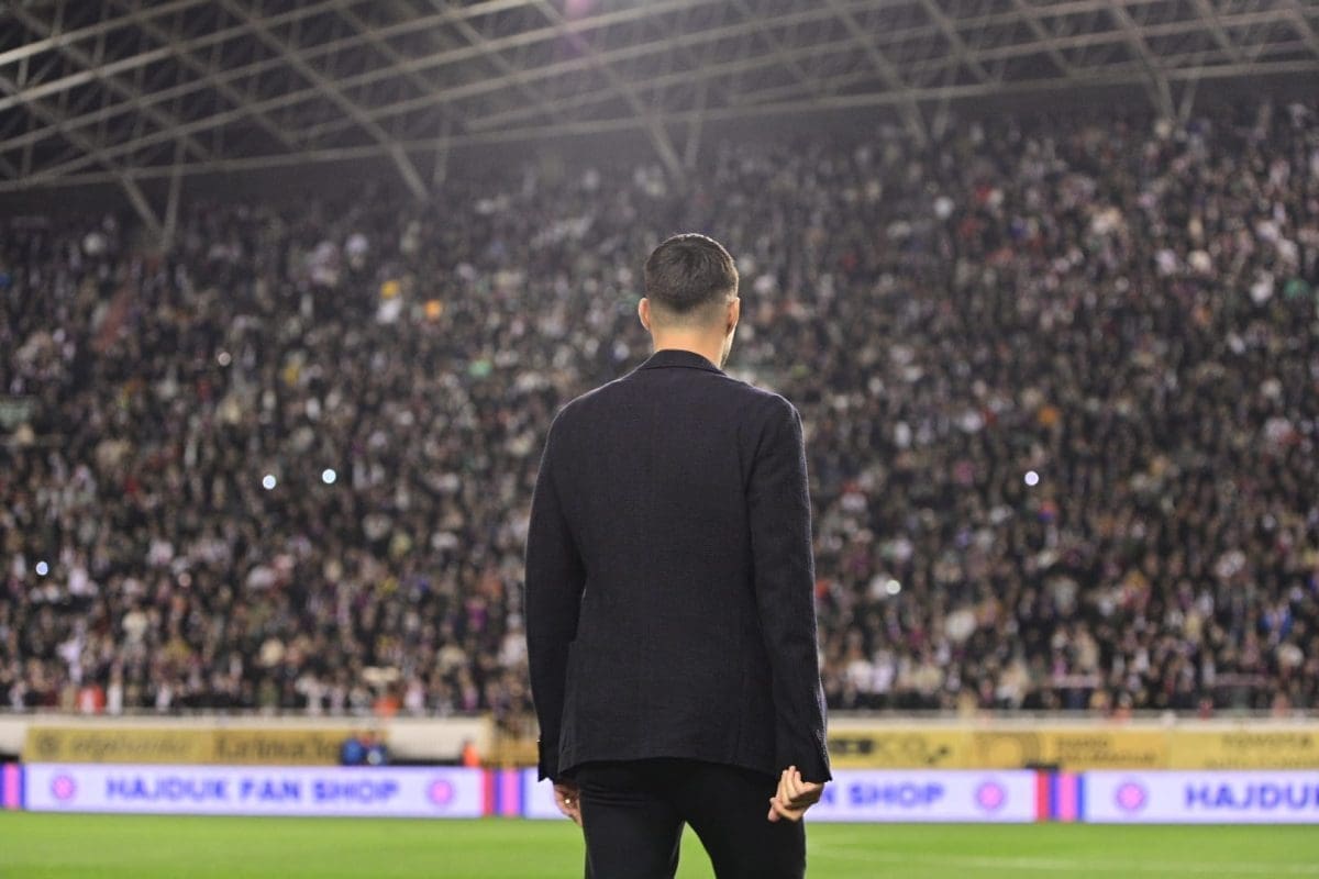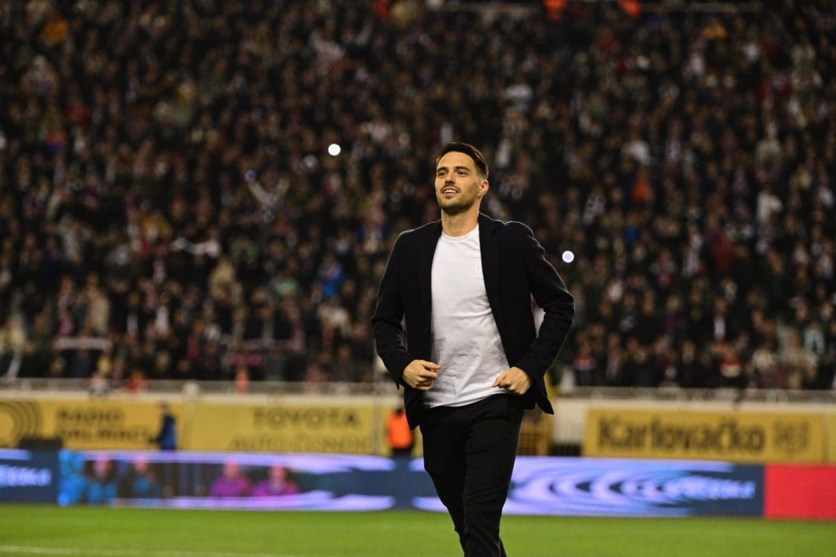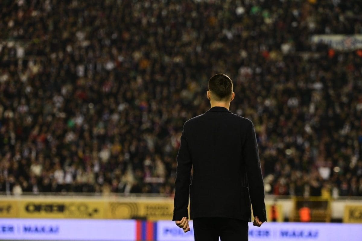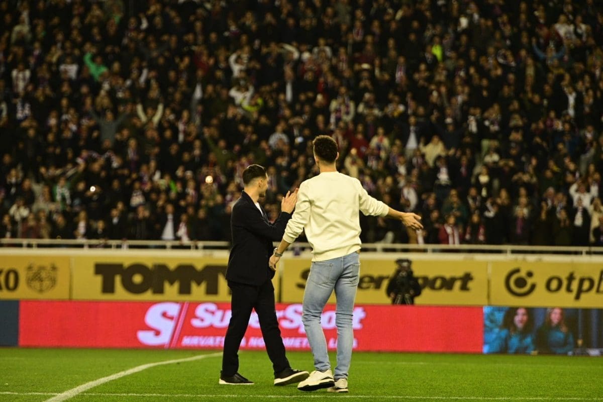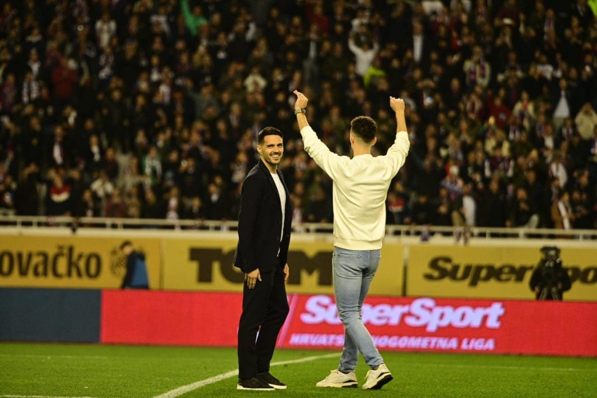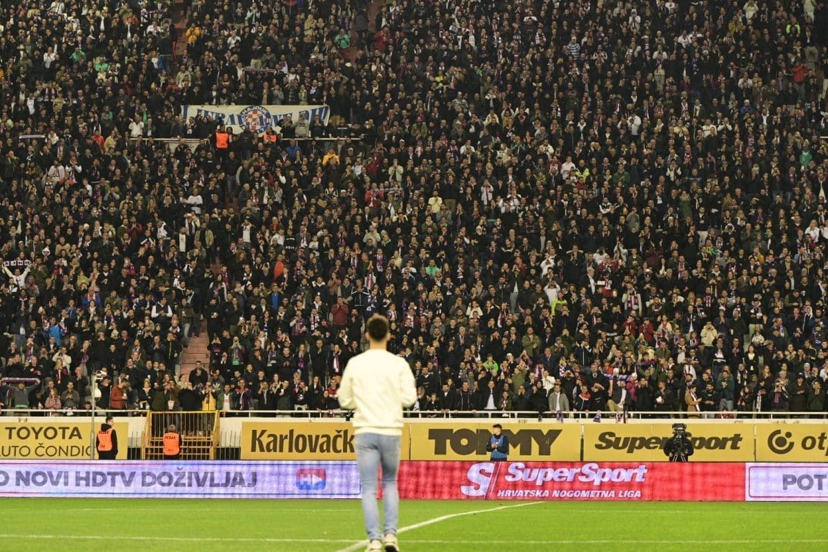 Prije samog početka susreta, povratnik u redove Hajduka, Ivan Perišić izišao je u trenerski prostor i zaradio ovacije cijelog Poljuda. Perišić je potom pred sam početak susreta istrčao na travnjak, do centra Poljuda i zaradio ogromne ovacije. Pridružio mu se Josip Brekalo koji je također pridobio simpatije publike uz pjesmu „ruke ćemo skupa za Bile dići / ko jedno srce za Hajduk ćemo biti".