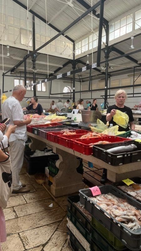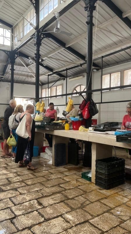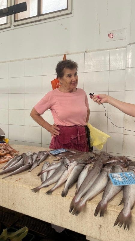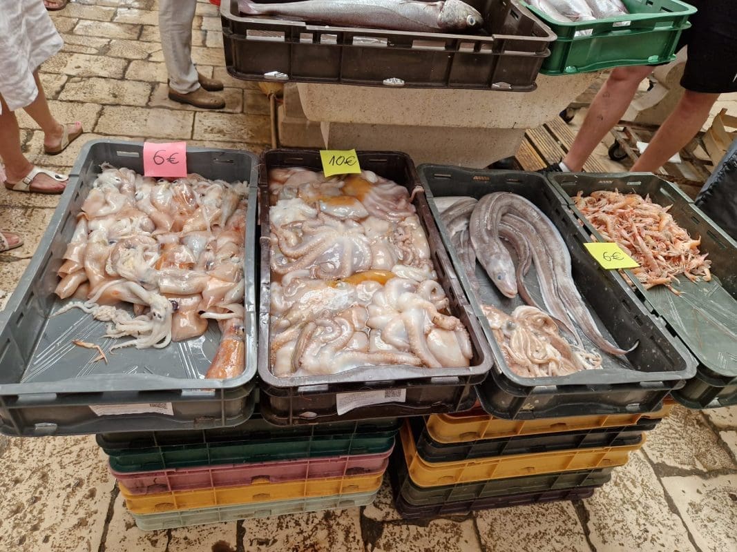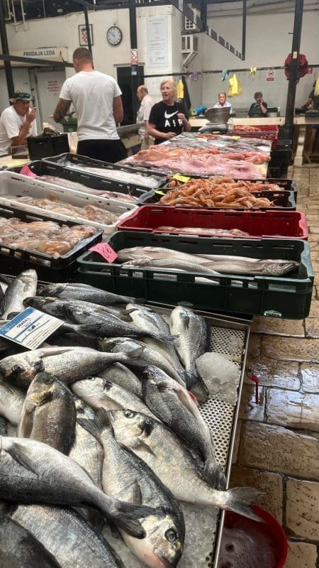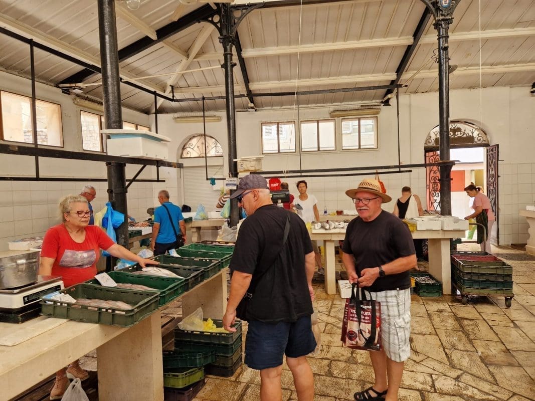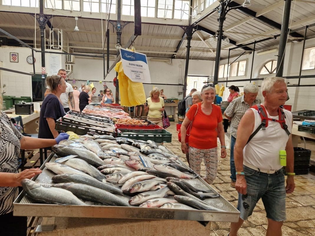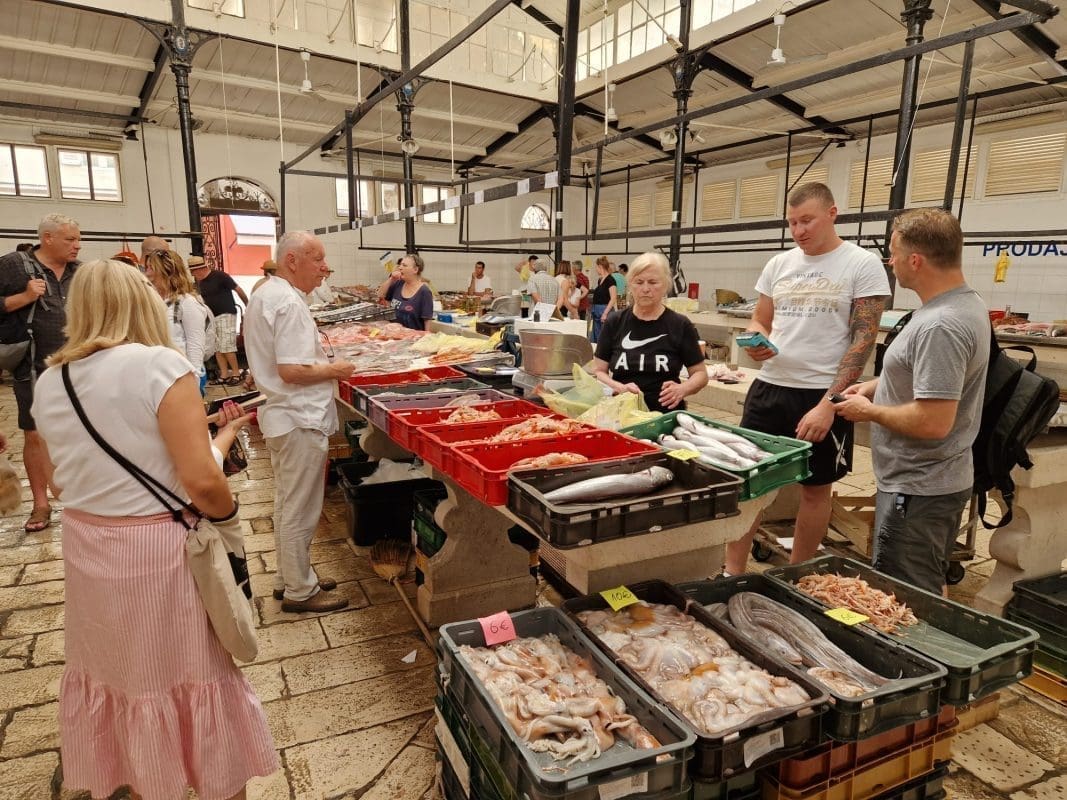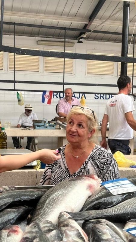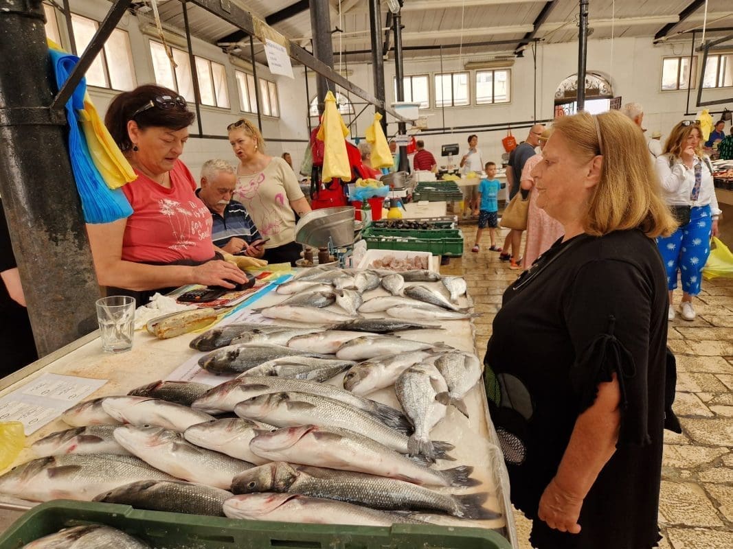 "Ima koćarske ribe najviše. Ima malo ljudi danas, priplašili su se vručine. Pao je broj ljudi, ne kupuju stariji nema ih. Slušaju na televiziji da je vrućina i da ne idu vani, pripa se svit. Starijih nema, mlađi ne kupuju. Turisti samo gledaju, ne kupuju puno, kada ih i ponudimo viču 'Turista, turista, hotel' ", rekla nam je gospođa Cvita.
