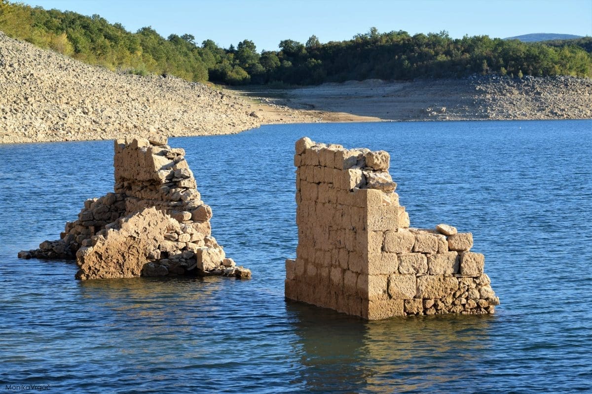 zbog niske razine vode, iz jezera su “izronili” potopljeni ostaci manastira Dragović, sela Koljane, Garjak i Ćorići. Osim toga, postao je vidljiv jedan od perućkih izvora – Točilo.
