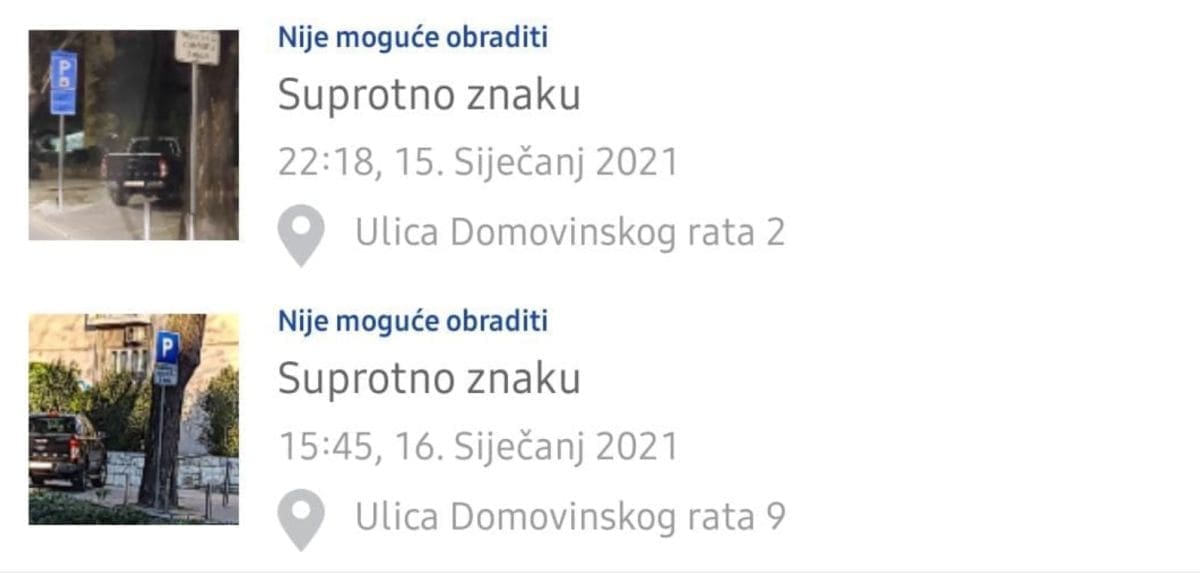 "Obavili smo provjere na terenu u ulici Domovinskog rata kojom prilikom na mjestu rezerviranom za parkiranje vozila MUP-a RH nije zatečeno nikakvo parkirano vozilo, dok je na susjednom mjestu rezerviranom za parkiranje vozila osoba s invaliditetom zatečen parkiran osobni automobil koji je odmah preparkiran, a vozač sankcioniran", odgovorili su nam iz policije.