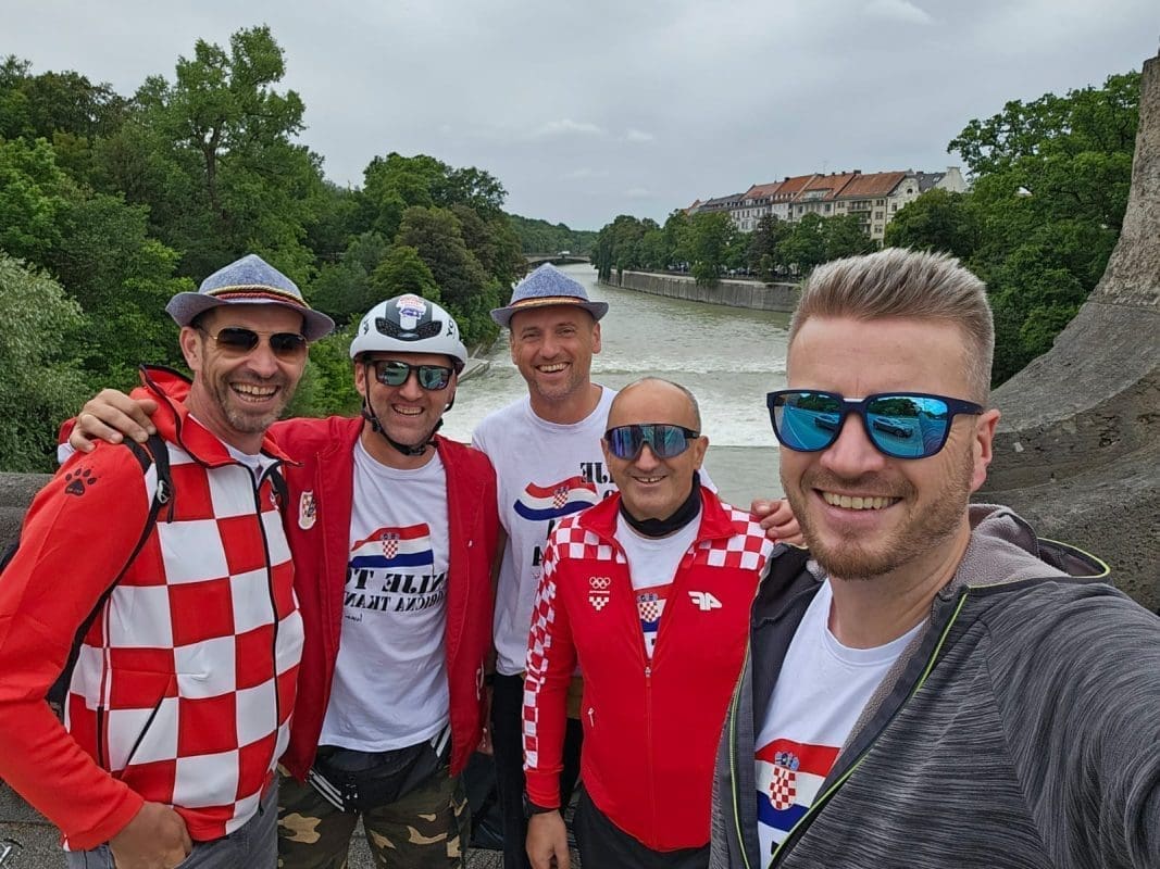 Liječnik Ivan Milas, Hrvoje Lončar, Ivan Milas Iko, Miljenko Mustapić i Tomislav Karlović uputili su se automobilom iz Zagreba do Münchena gdje su na vlak ukrcali svoje bicikle, da bi se na prvu utakmicu sa Španjolskom njima i dovezli, a onda sljedeća tri dana nastavili pedalirati prema Hamburgu na okršaj s Albanijom. Odvozili su nevjerojatnih 350 kilometara glavnim prometnicama i poljskim putima po suncu i kiši, a noćili u šatorima u prirodi. Do početka utakmice, ova petorka nastavit će biciklirati po Hamburgu i družiti se sa stotinama Imoćana koji su pristigli kako bi bodrili Vatrene.