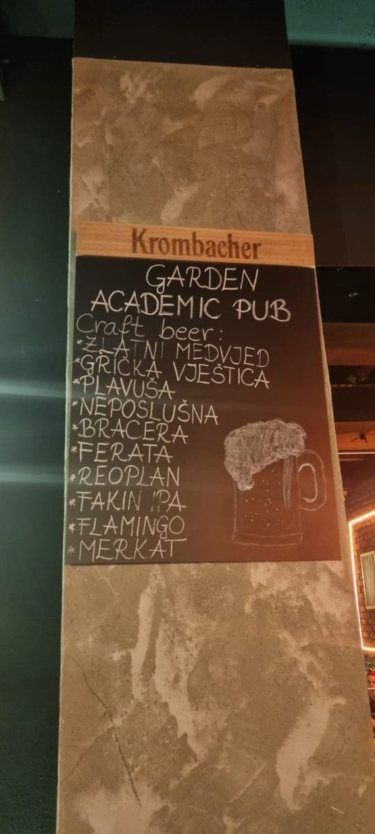 Osim fantastične glazbe, očekuje vas i iznimno bogat izbor pića, široka ponuda omiljenih piva i craftova, čak više od 30 različitih vrsta koje će zadovoljiti sve vaše želje. Osoblje Pub Garden Academic spremno je da vas dočeka i posluži s osmijehom na licu.