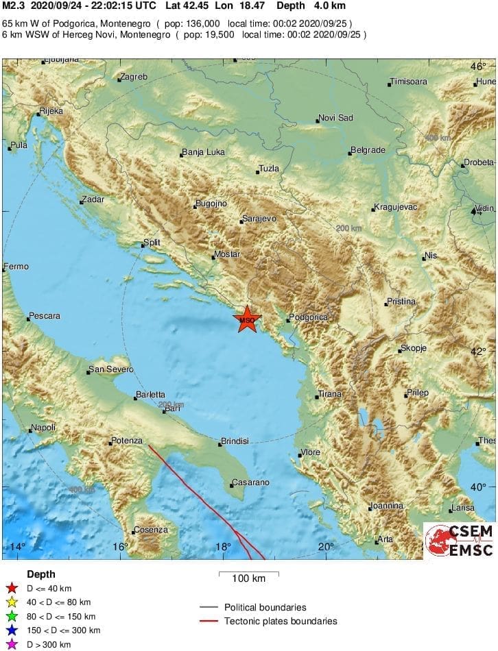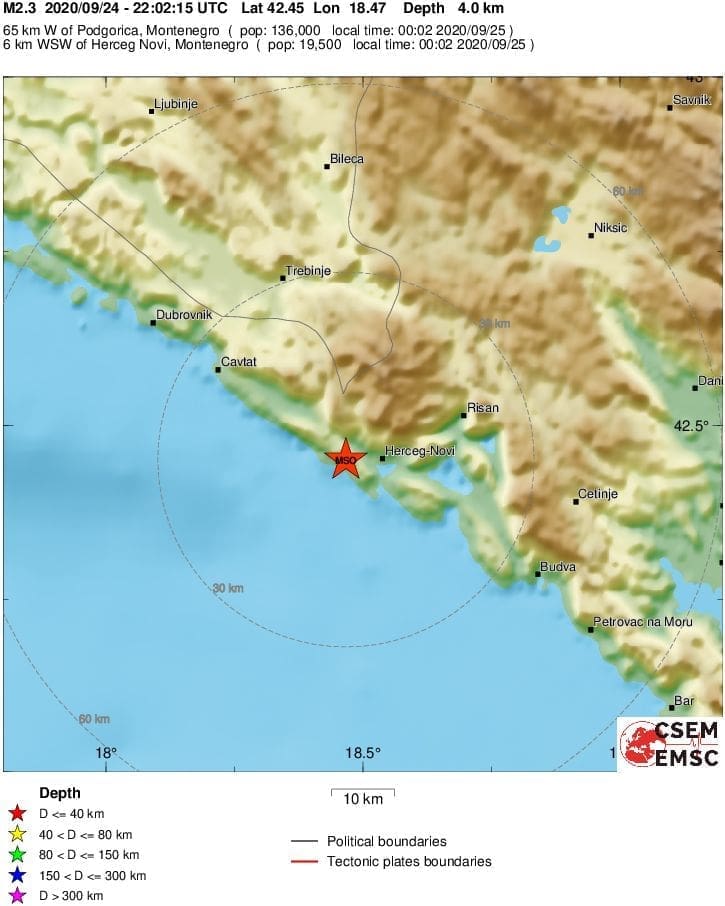 Epicentar je bio 35 kilometara jugoistočno od Dubrovnika, a dogodio se na dubini od samo 4 kilometra.