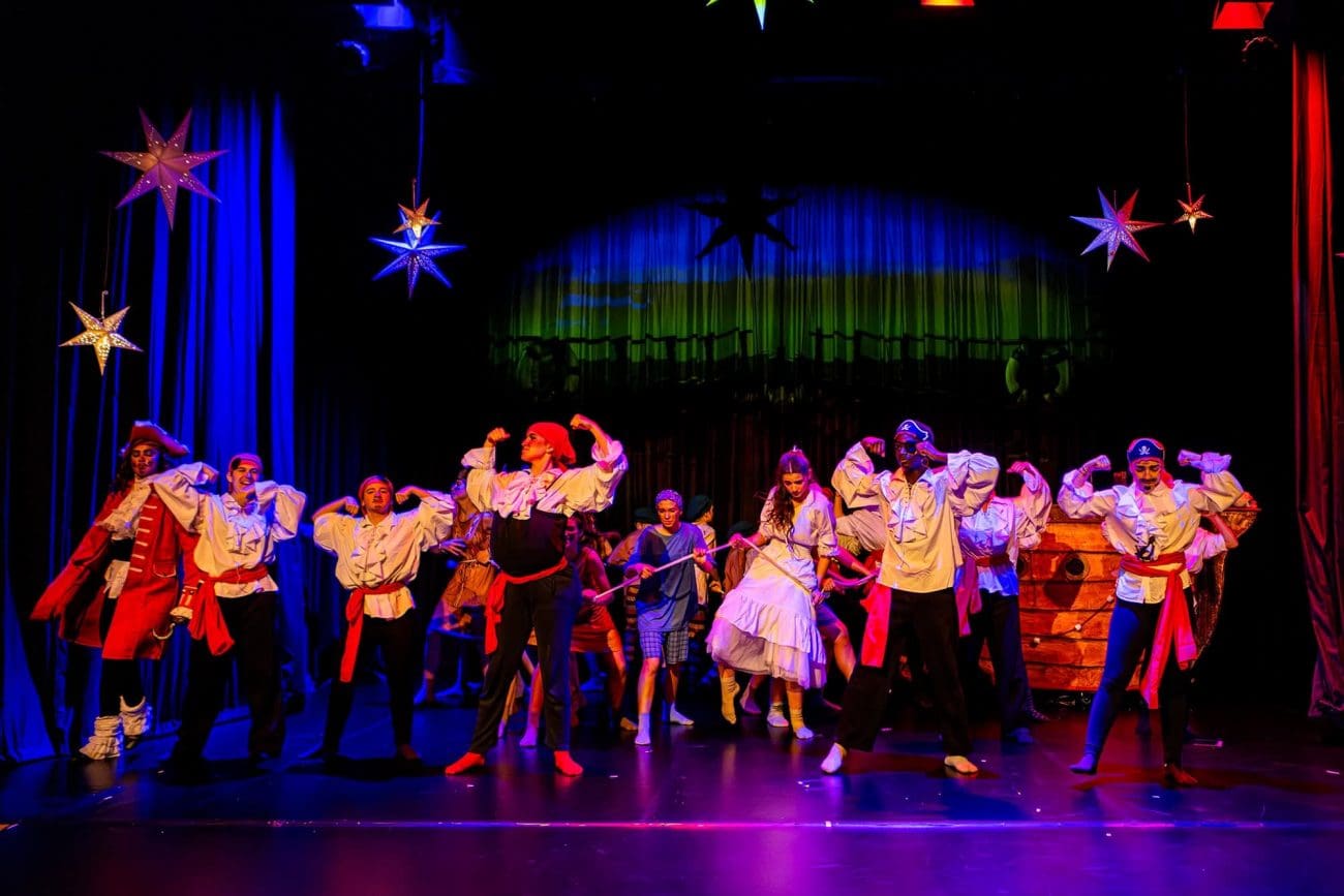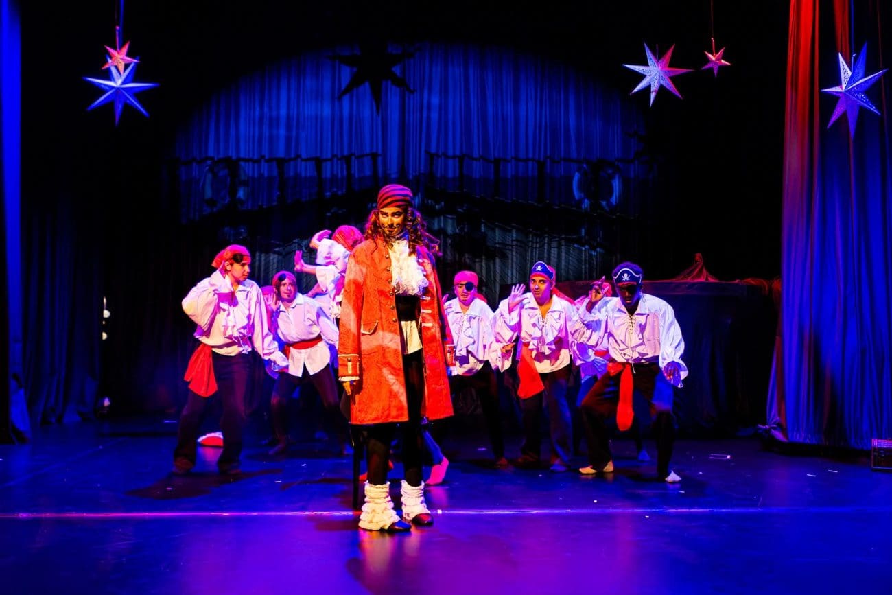 Petar Pan dobiva najakrobatskije, najslobodnije dionice, koreografiju koja savršeno odražava njegov vječni otpor odrastanju. Wendy i njezina braća, u igri imitacije Petrova i vilinskog pokreta, postupno shvaćaju duh neopterećenosti i slobode u koju ih Petar povodi na putu prema Nigdjezemskoj. No taj put nije bez opasnosti: glazba naglo poprima dramatičniji, tvrđi karakter kada na scenu stupaju Kapetan Kuka i njegovi pirati, obilježeni limenim puhačima i ritmom koji nosi tenziju. Pirati su šarmantno prgavi, precizno usklađeni, a posebnu dozu humora unosi Krokodil – groteskan i simpatičan u isto vrijeme. Solo Kapetana Kuke upečatljiv je, dramaturški jak, u potpunosti dostojan glavnog antagonista.