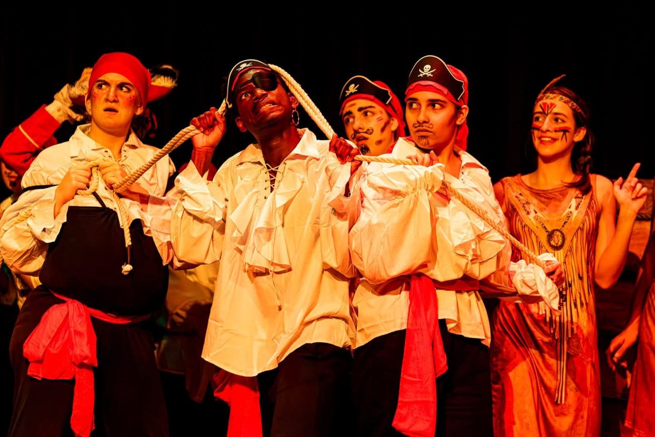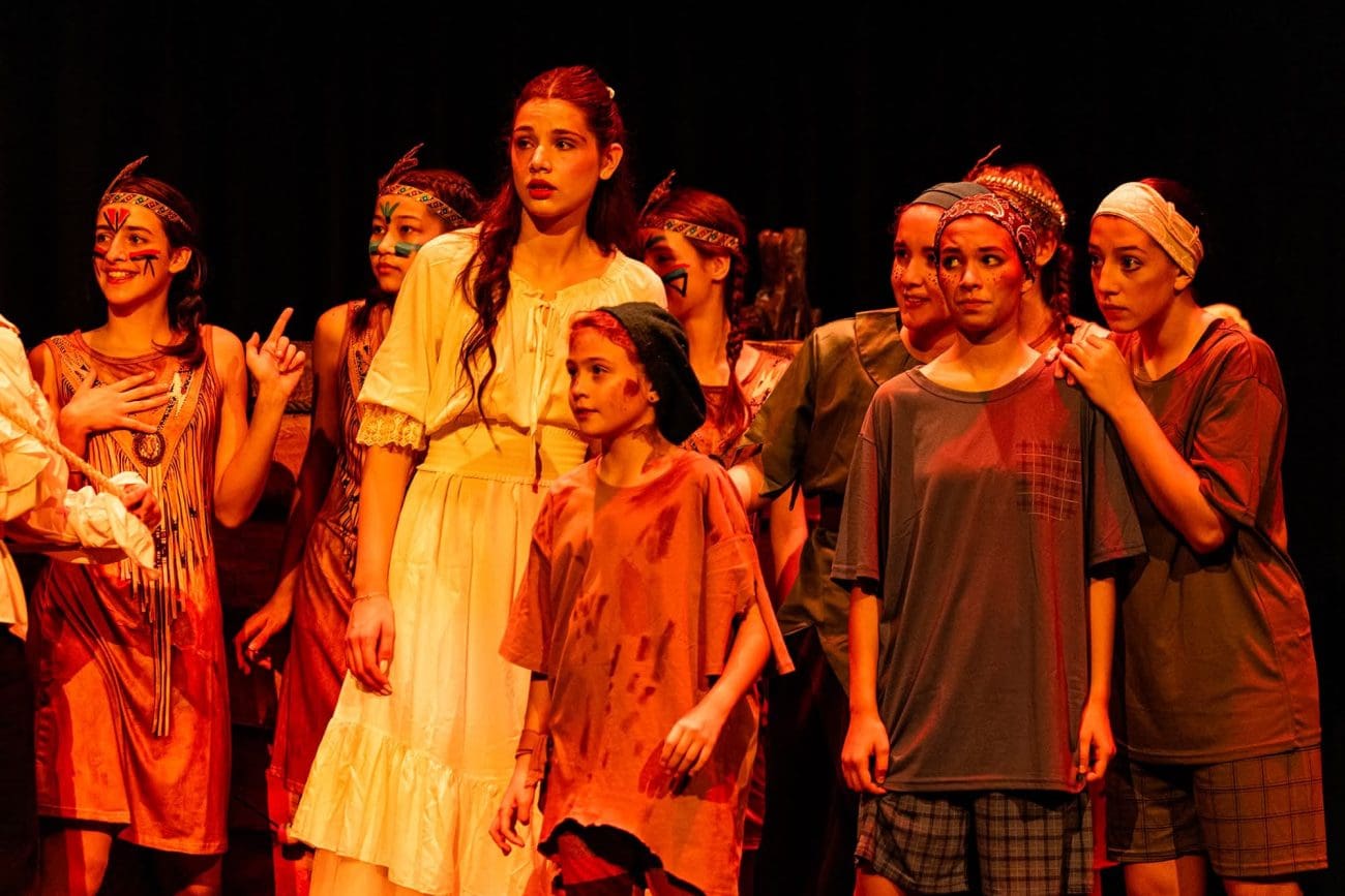 Kontrast toj prijetnji donosi nastup Indijanaca predvođenih Tigrastim Ljiljanom, čiji je pokret organskiji, obredniji, naglašen ritmom i plesom oko vatre. Netrpeljivost između Petra Pana i Kapetana Kuke kulminira plesnim dvobojem naglašenim udaraljkama, da bi u konačnom okršaju ansambl pokazao visoku razinu uvježbanosti i disciplinirane energije. Bitka je kolektivna, žustra i scenski vrlo čitka: mladi plesači razumiju ne samo pokret, nego i dramaturški naboj priče.