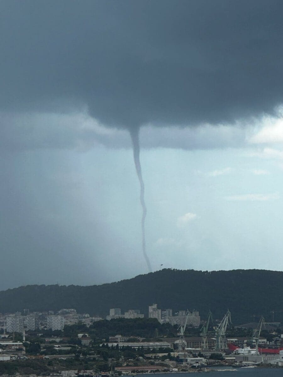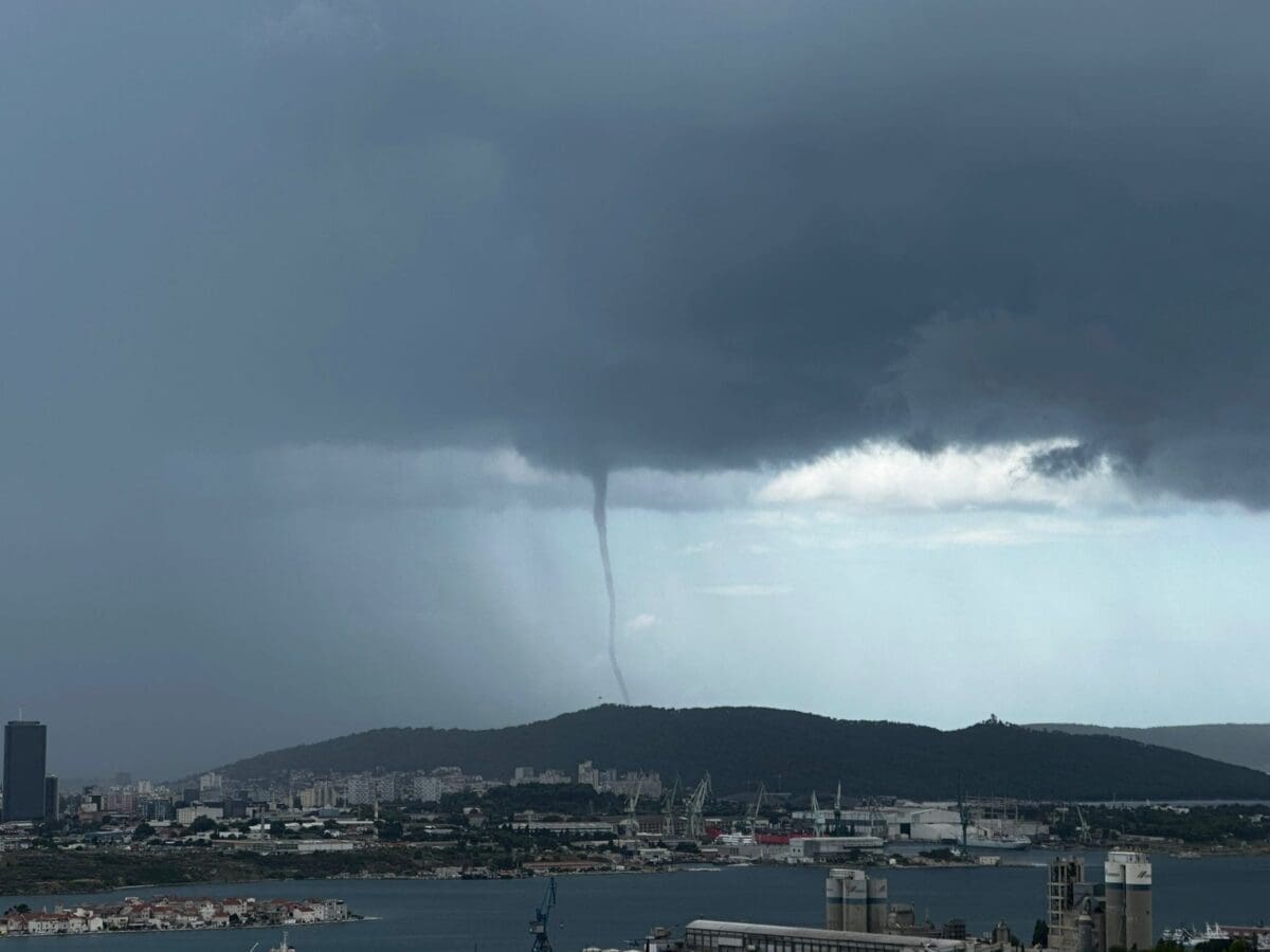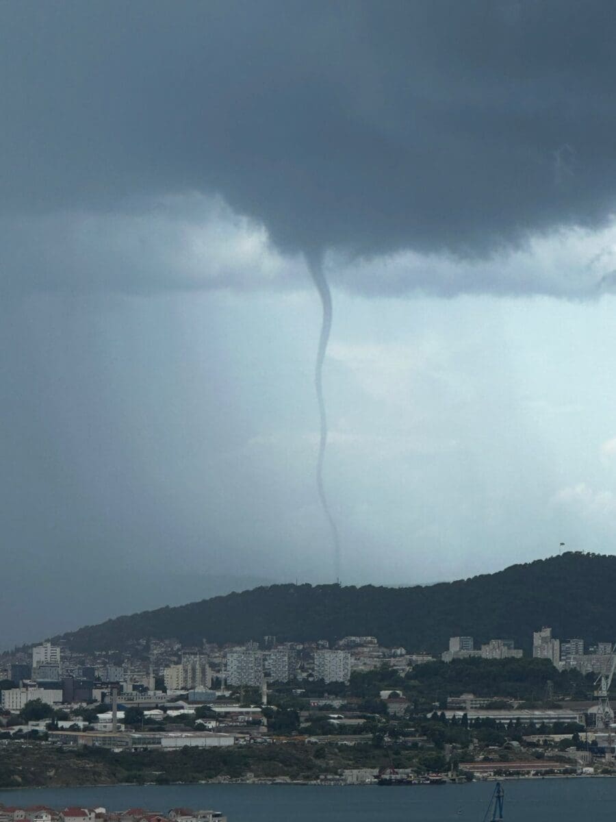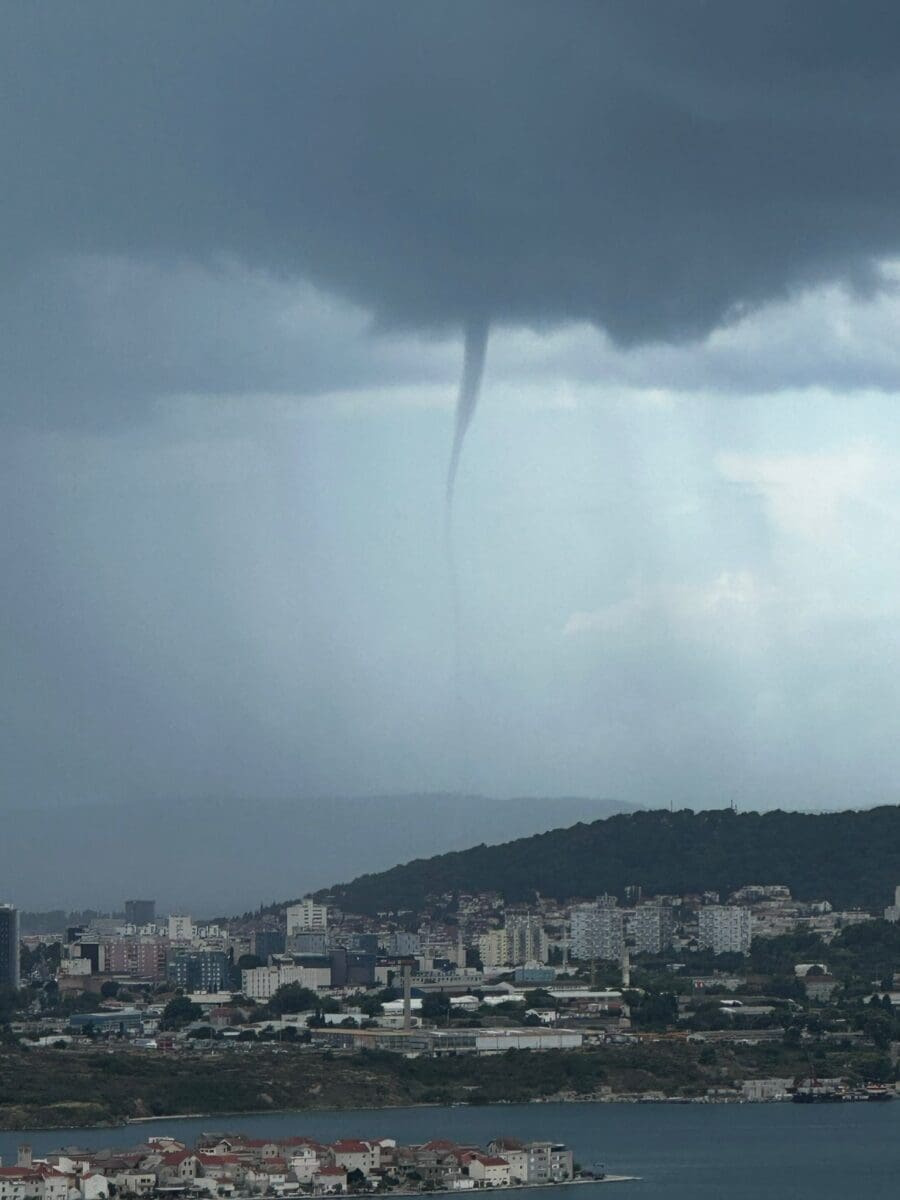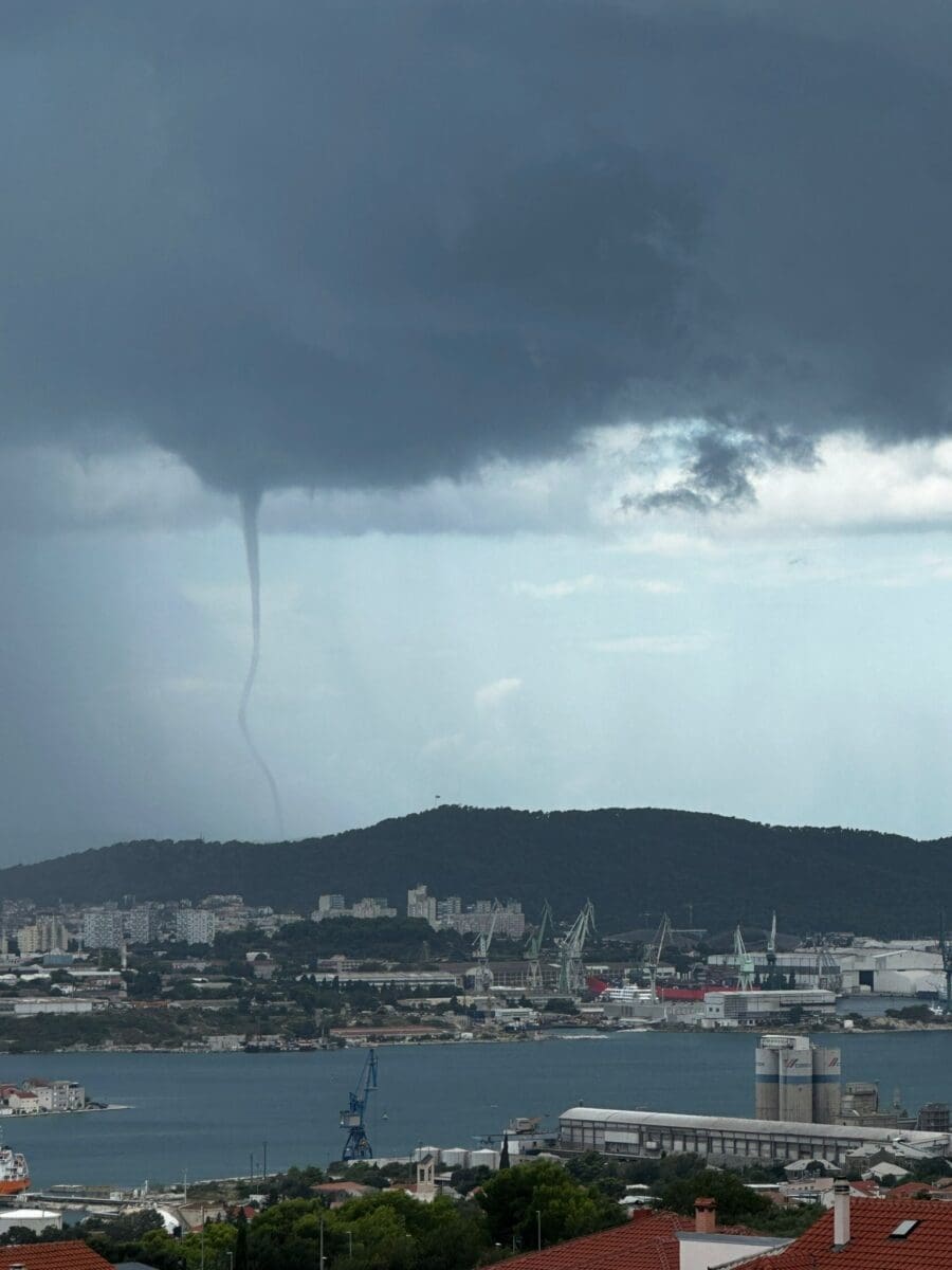Iza 12 sati linija grmljavinskih oblaka razvila se na moru splitskog akvatorija, a oko 12:15 velika pijavica pojavila se između Čiova i Splita.