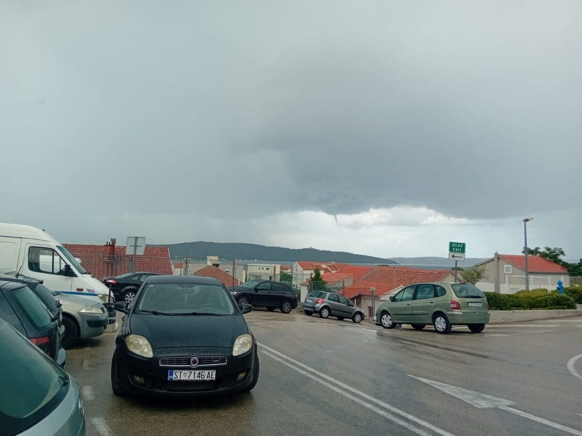 Oko 12:30 dio Kaštela zahvatilo silovito nevrijeme, vezano uz isti oblak koji je donio pijavicu na moru.