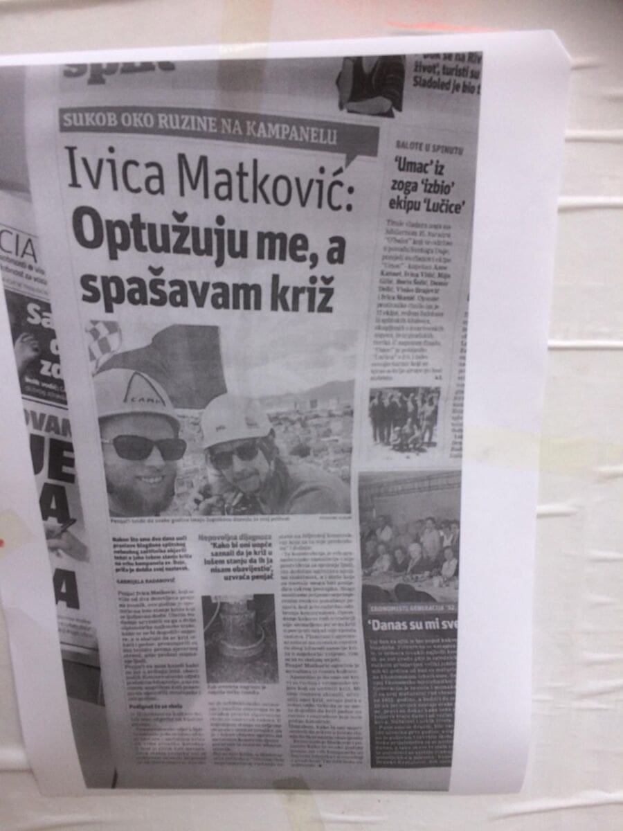 Alpinist Ivica Matković već se desetljećima na blagdan svetog Duje penje na katedralu i vješa hrvatsku zastavu. Baš on je upozorio na loše stanje zvonika i propadanje križa.