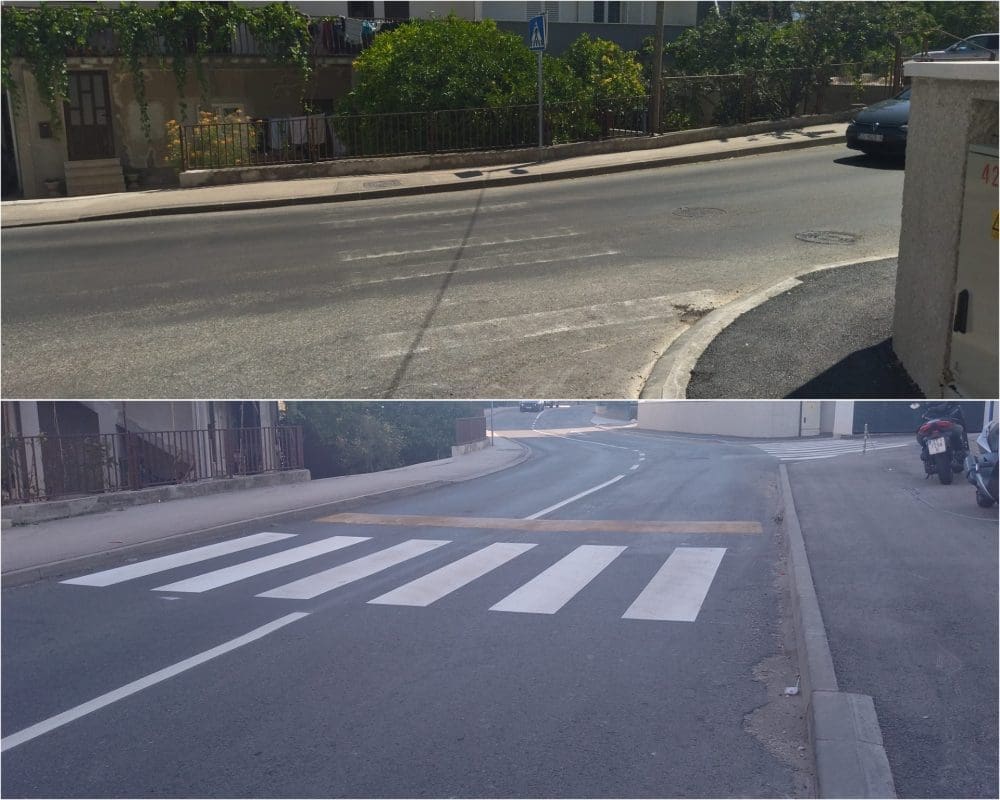 "Malen korak za Grad Split, ali veliki skok za Mejaše. Nakon nekoliko mailova, dvadesetak poziva, poruka i napomena, napokon je osvježena prometna signalizacija u Ulici Josipa Jovića. Ono što je bilo važnije od skoro pa nevidljive središnje linije jest pješački prijelaz.