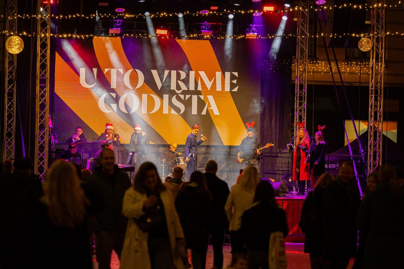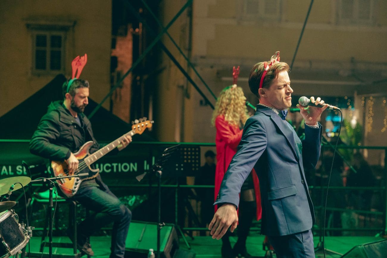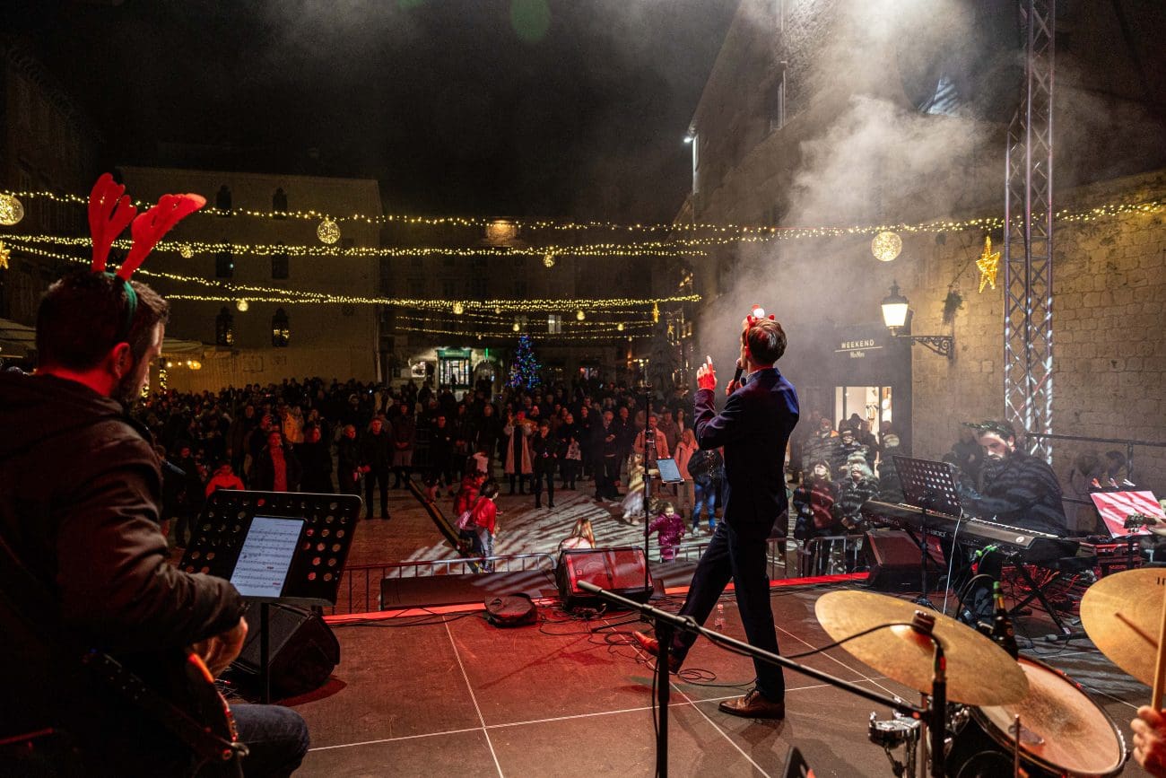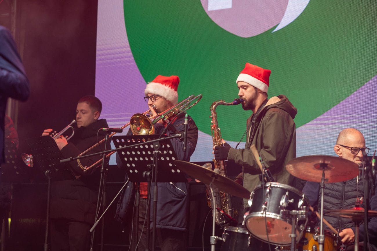 Splitska Pjaca večeras se pretvorila u filmsku kulisu u kojoj su Mateo Đikić i Blue Eyes publici donijeli jazz standarde, božićnu filmsku glazbu i bezvremenske evergreene, prizivajući atmosferu 50-ih i 60-ih godina prošlog stoljeća. Uz pjesme Deana Martina, Franka Sinatre, Ive Robića i drugih glazbenih velikana, večer je protekla u znaku elegancije, nostalgije i posebnog blagdanskog ugođaja.