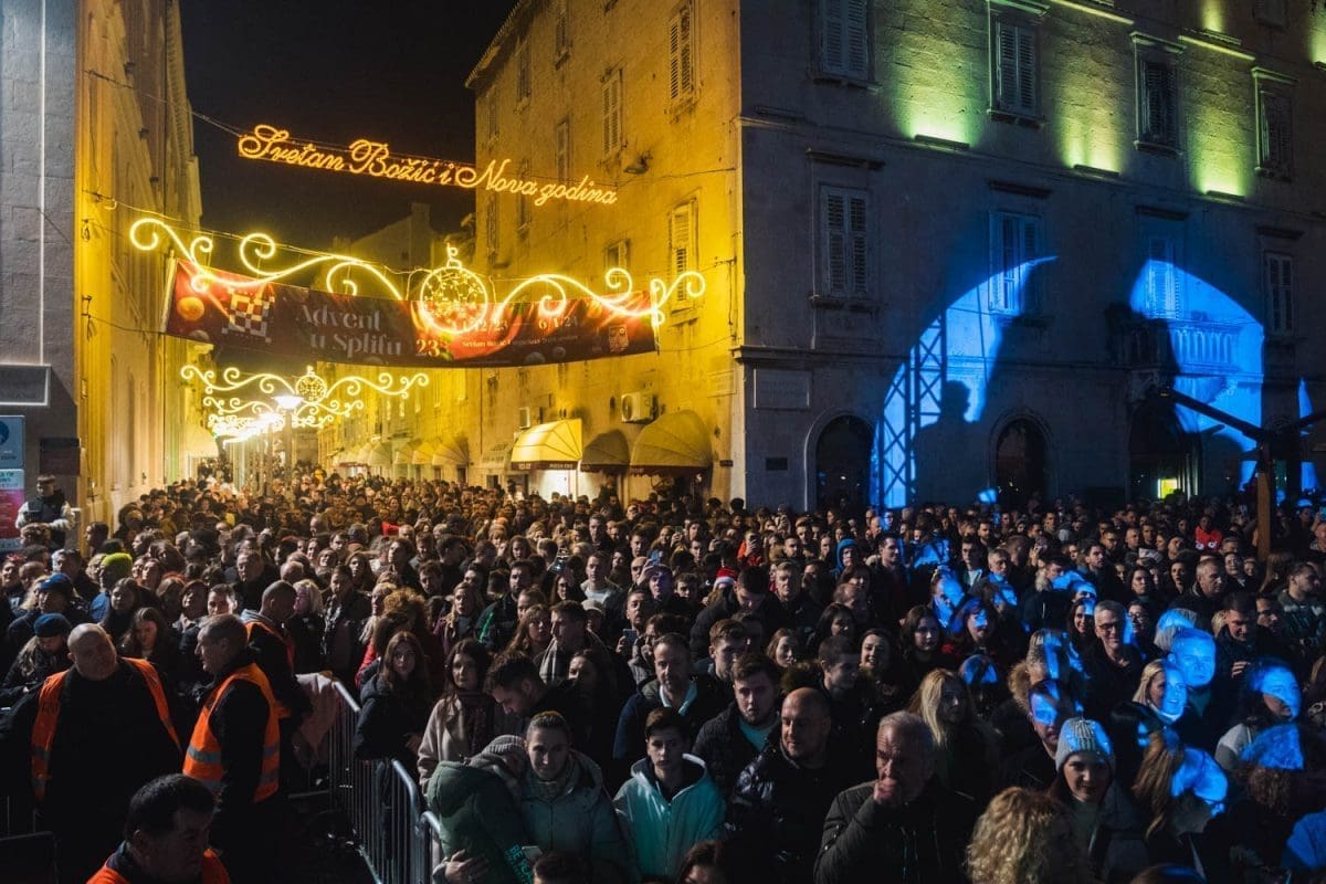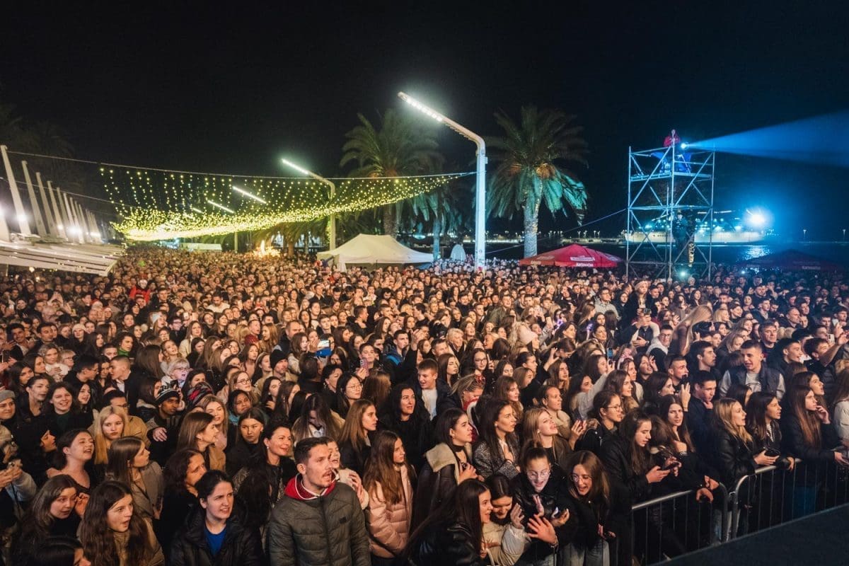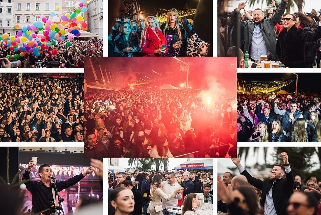 Prava žiža potom je navečer bila na Rivi gdje je nekoliko desetaka tisuća ljudi uživo gledalo novogodišnji koncertni spektakl na kojem su nastupili Grše, Doris Dragović i Kuzma & Shaka Zulu. Svako od njih imao je ciljanu publiku, a nje očito nije nedostajalo jer su na Rivu došli iz Zagore, s otoka čak i drugih krajeva Hrvatske.
