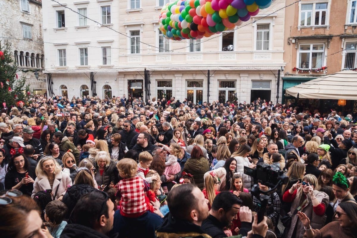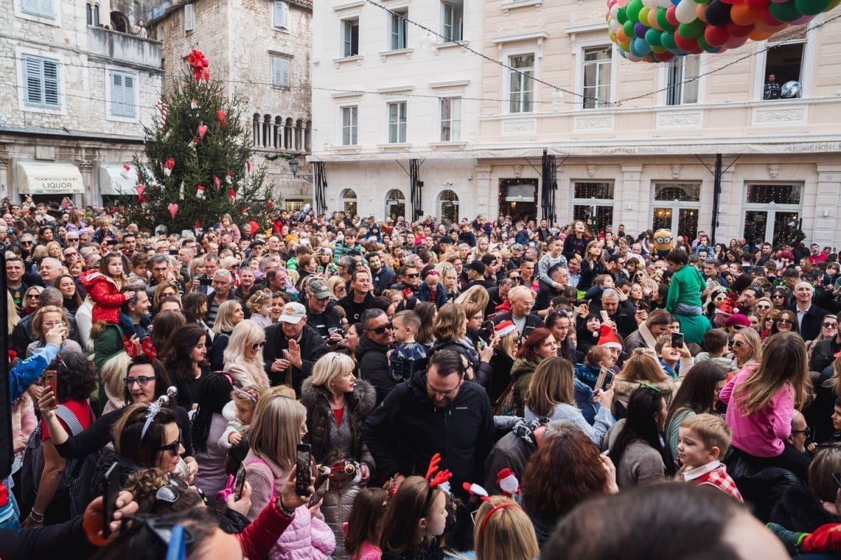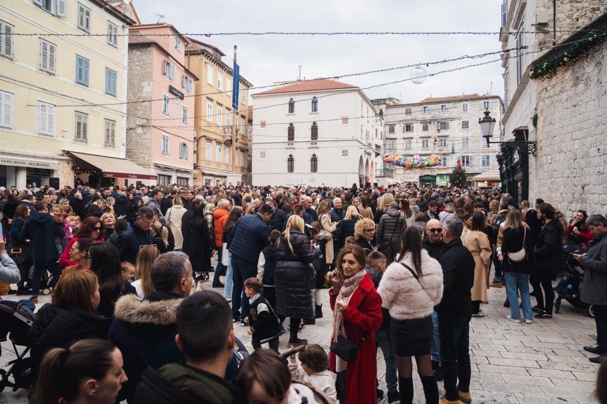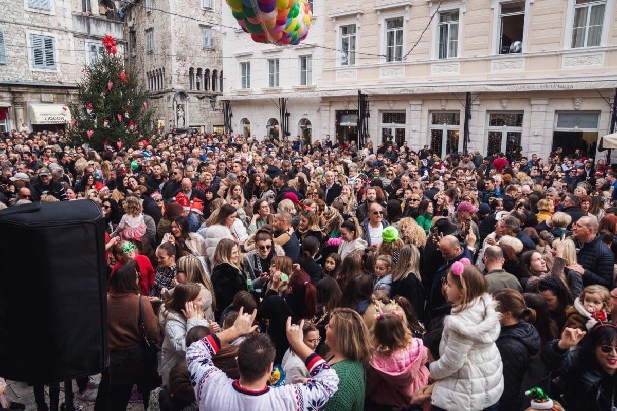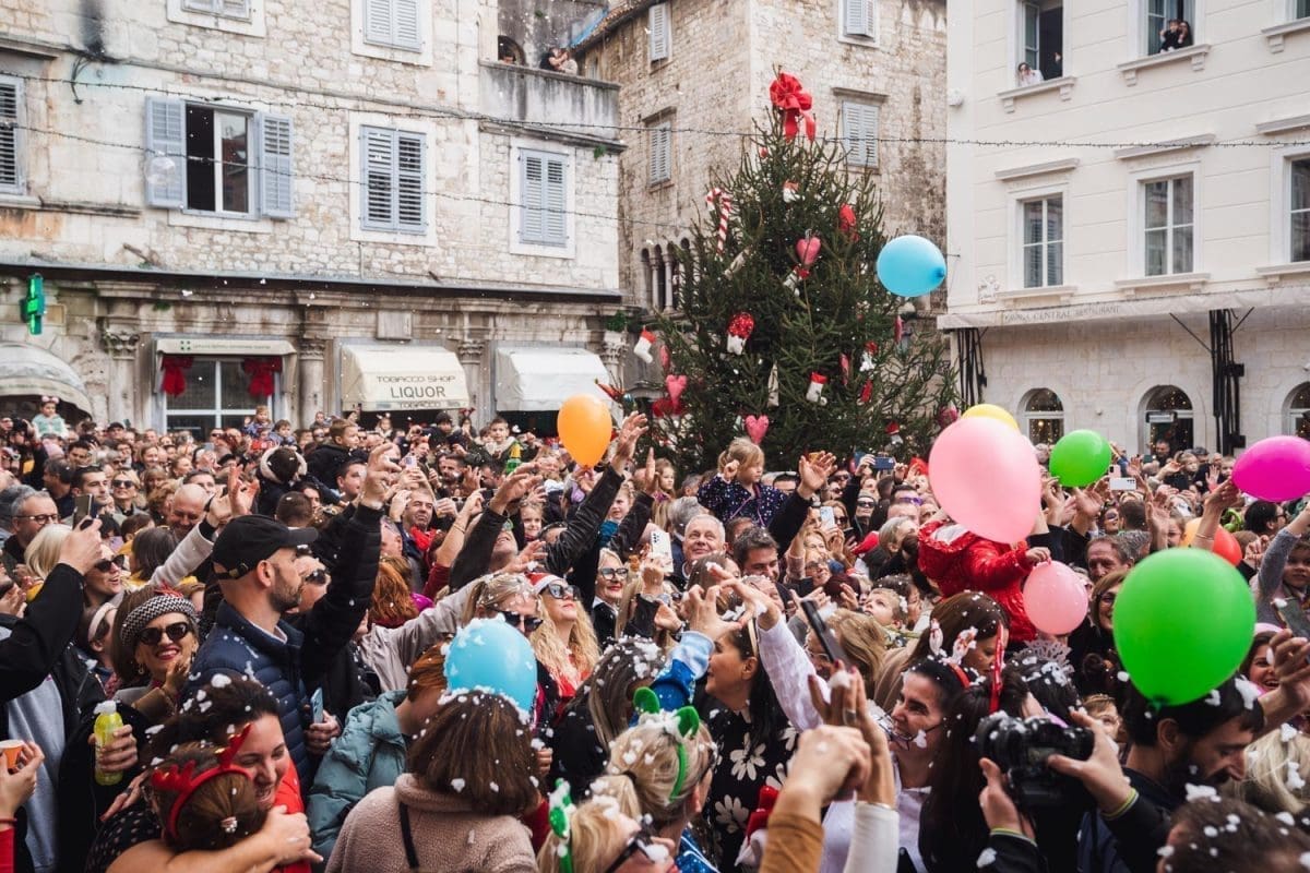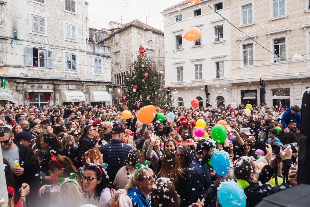 Osobito veselo je bilo u Splitu. Dio Splićana je dugo grintao oko stanja na Pjaci, prvo jer nije bila okićena na vrijeme, potom kako je okićena, ponajviše da u prosincu nije bilo "ni pasa" na njoj, no na Badnjak, a osobito na Staru godinu Pjaca je zablistala starim sjajem jer je organiziran dnevni doček Nove godine, u 15 sati. Sjatilo se na Pjacu i staro i mladu, uživali su i domaći i furešti. Ništa nije odavalo da je ovaj dio grada izvan sezone grad duhova.