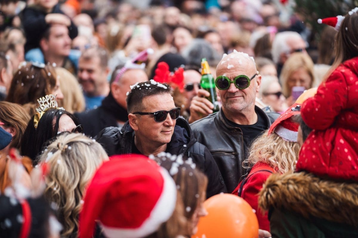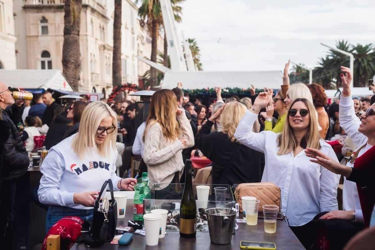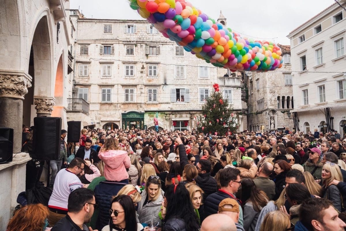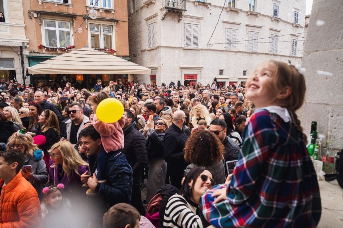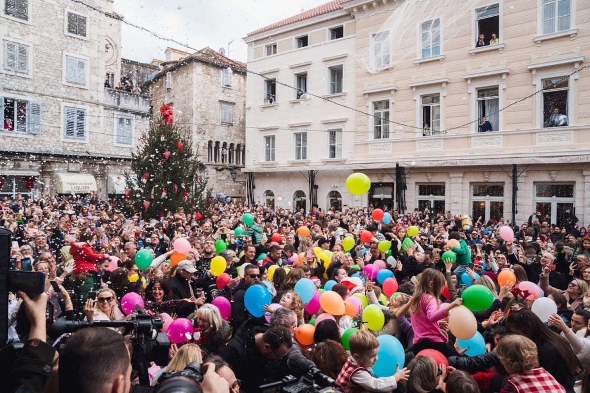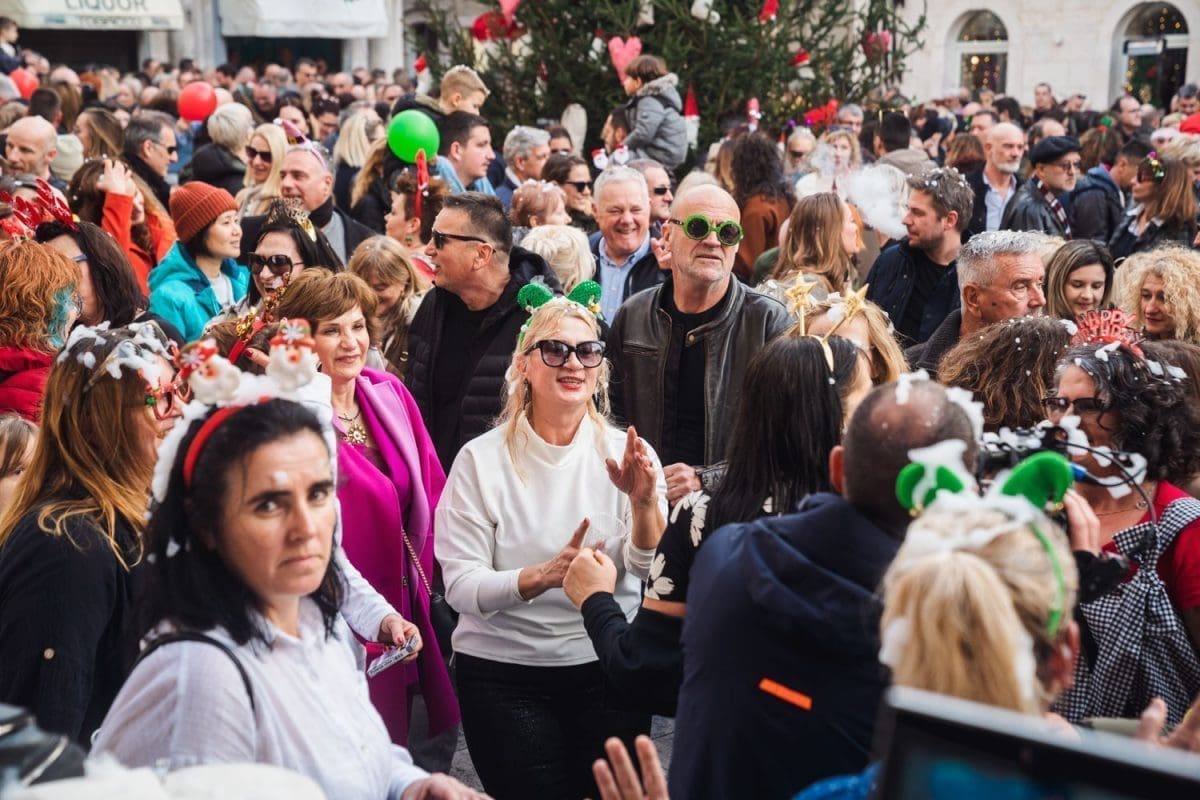 Osobito veselo je bilo u Splitu. Dio Splićana je dugo grintao oko stanja na Pjaci, prvo jer nije bila okićena na vrijeme, potom kako je okićena, ponajviše da u prosincu nije bilo "ni pasa" na njoj, no na Badnjak, a osobito na Staru godinu Pjaca je zablistala starim sjajem jer je organiziran dnevni doček Nove godine, u 15 sati. Sjatilo se na Pjacu i staro i mladu, uživali su i domaći i furešti. Ništa nije odavalo da je ovaj dio grada izvan sezone grad duhova.