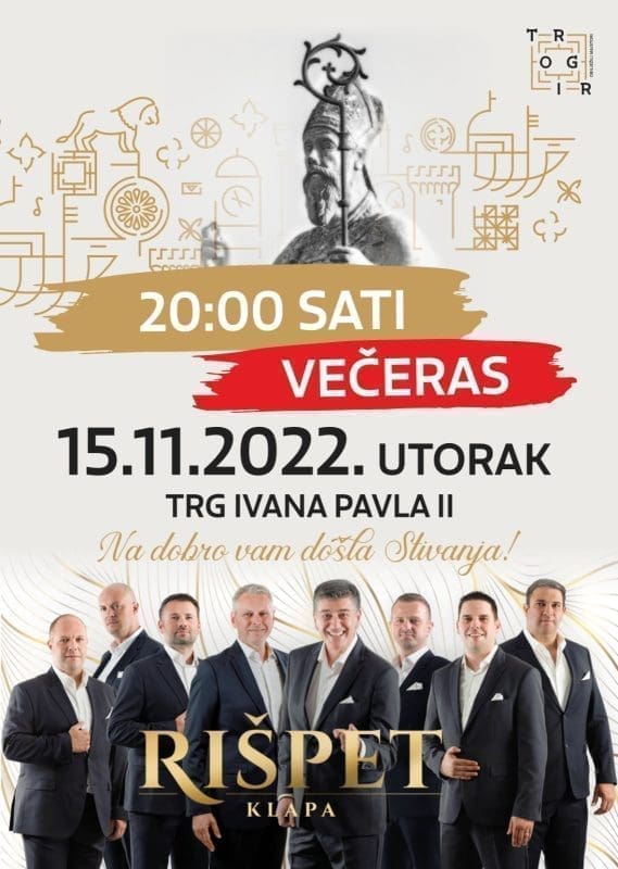 Koncert Klape Rišpet, koji se trebao održati jučer povodom Dana grada Trogira i blagdana sv. Ivana Trogirskog, održat će se danas.