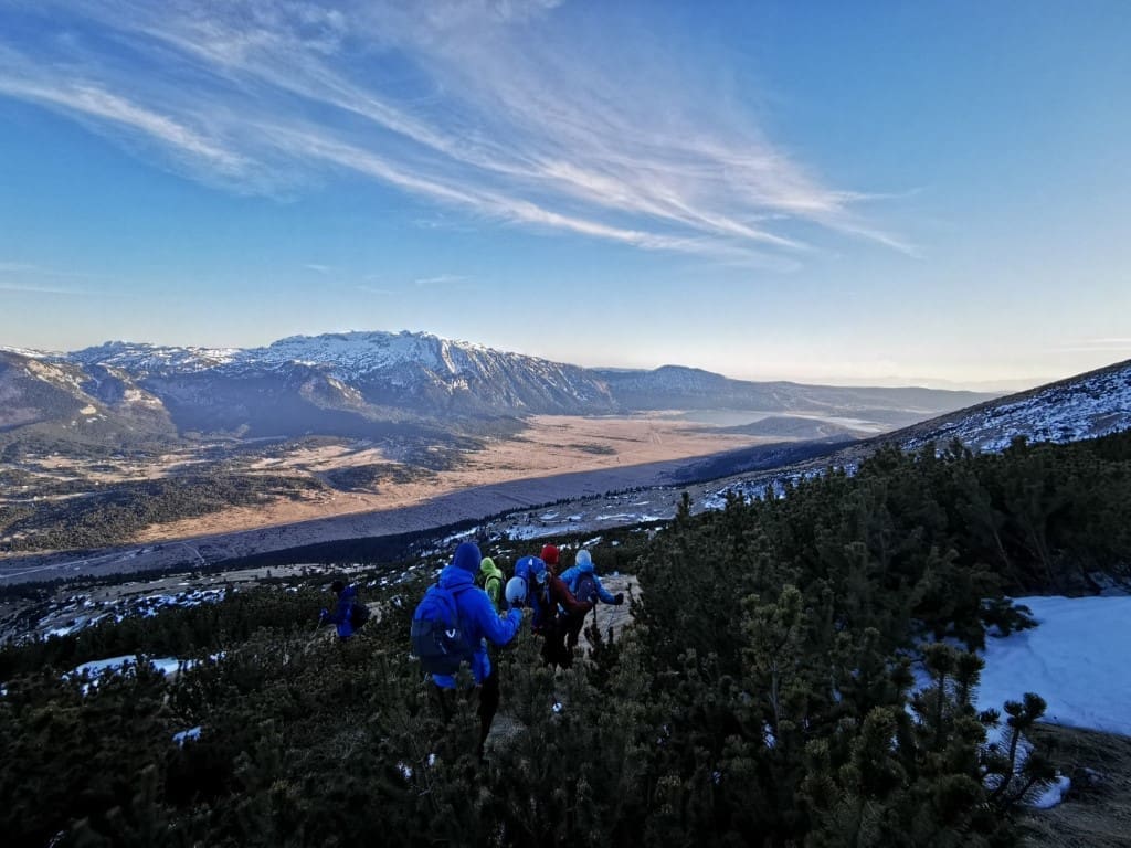 U nedjelju je većini buđenje bilo oko 6 sati. Izletnici su se podijelili u dvije grupe i to u "nizinsku" i "gorsku" koja je odlučila planinariti na najljepšu planinu ovog dijela BiH, a možda i šire, Čvrsnicu. "Nizinaši" su uživali u obalama Blidinjskog jezera te su napravili dnevni izlet do Masne luke, gdje su se prepustili zimskim radostima u snijegu. 12 izletnika odlučilo se na planinarenje na Čvrsnicu što će se pokazati kao sjajan izbor. Iako se nije znalo kakvi će uvjeti vladati na ovoj uvijek nepredvidljivoj, ali prekrasnoj planini, planinari su s odgovarajućom opremom krenuli uzbrdo. U samom podnožju snijega nema puno, ali su dijelovi staze bili zaleđeni, pa je već nakon prvih pola sata planinarenja uslijedilo stavljanje dereza na gojzerice. Prva pauza napravljena je u prekrasnoj udolini koju je pokojni Edo Retelj nazvao Marenda. Prirodni amfiteatar ove zime nije imao ni blizu snijega kao u prosječnoj zimi kada se stabla u njemu i ne vide od visine snijega. Od Marende naviše visina snijega počela se naglo povećavati pa su nanosi mjestimice bili viši od pola metra. Ipak, sve je bilo praćeno temperaturama zraka iznad nule i slabim vjetrom, pa su planinari velik dio puta prešli u kratkim rukavima.