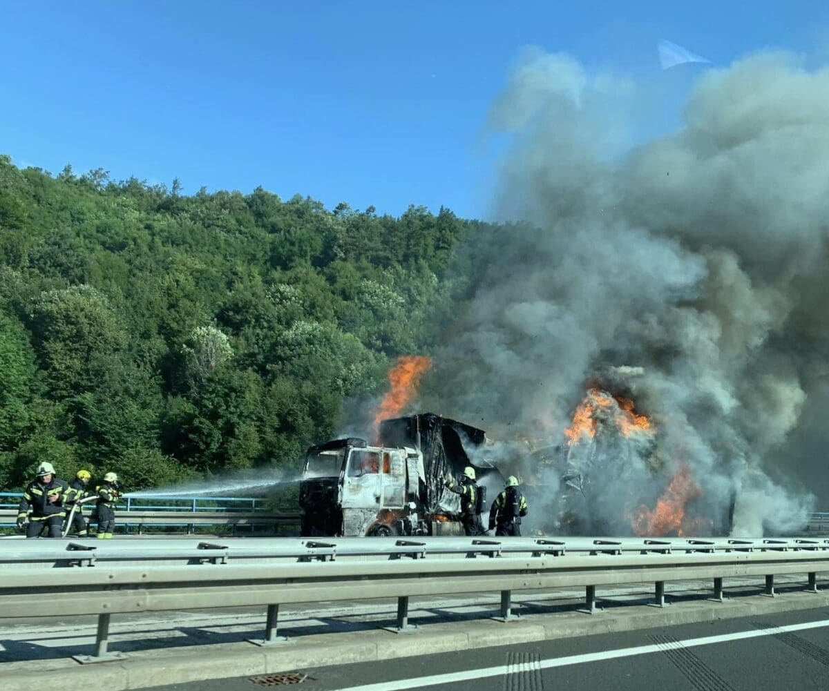 Odmah su dojurili brojni vatrogasci i djelatnici "Hrvatskih autocesta". Promet je nakratko prekinut, a sada se odvija otežano.