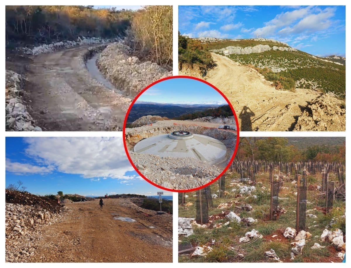 U pitanju je postavljanje temelja za izgradnju vjetroelektrane radi koje je dovedena teška mehanizacija koja je dio puteva na Kozjaku doslovno sravnila sa zemljom.