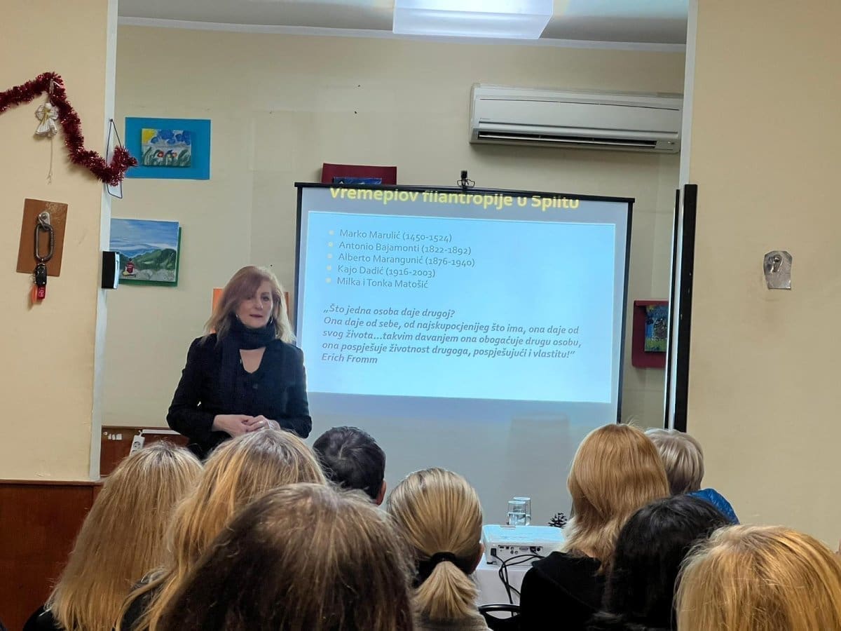 Prikljupljalo se pomoć u namirnicama za štićenike udruge MoSt i socijalnu samoposlugu. Đordana Barbarić, istinska volonterka, dobitnica nagrade grada Splita za životno djelo, utemeljiteljica i pokretačica brojnih programa udruge, održala je predavanje o dugogodišnjem i vrlo vrijednom radu udruge, o važnosti povezivanja, solidarnosti, volonterizmu i postignutim rezultatima. Dotakli su se priče o povijesti filantropije i posebnosti grada Splita, kao istinskog grada humanosti i solidarnosti.