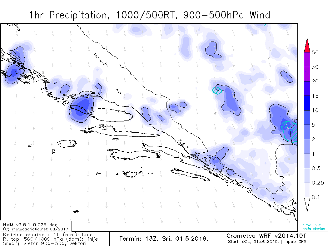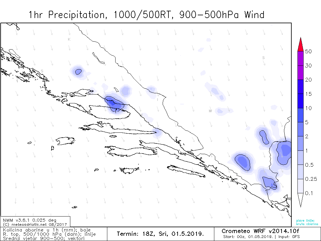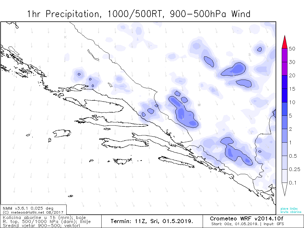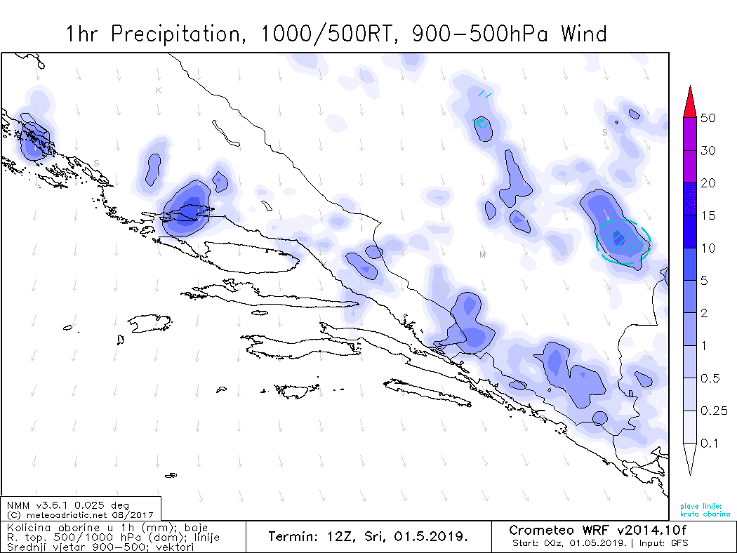 U nastavku pogledajte prognozu za Dalmaciju po satima od 12 sati do večeri.