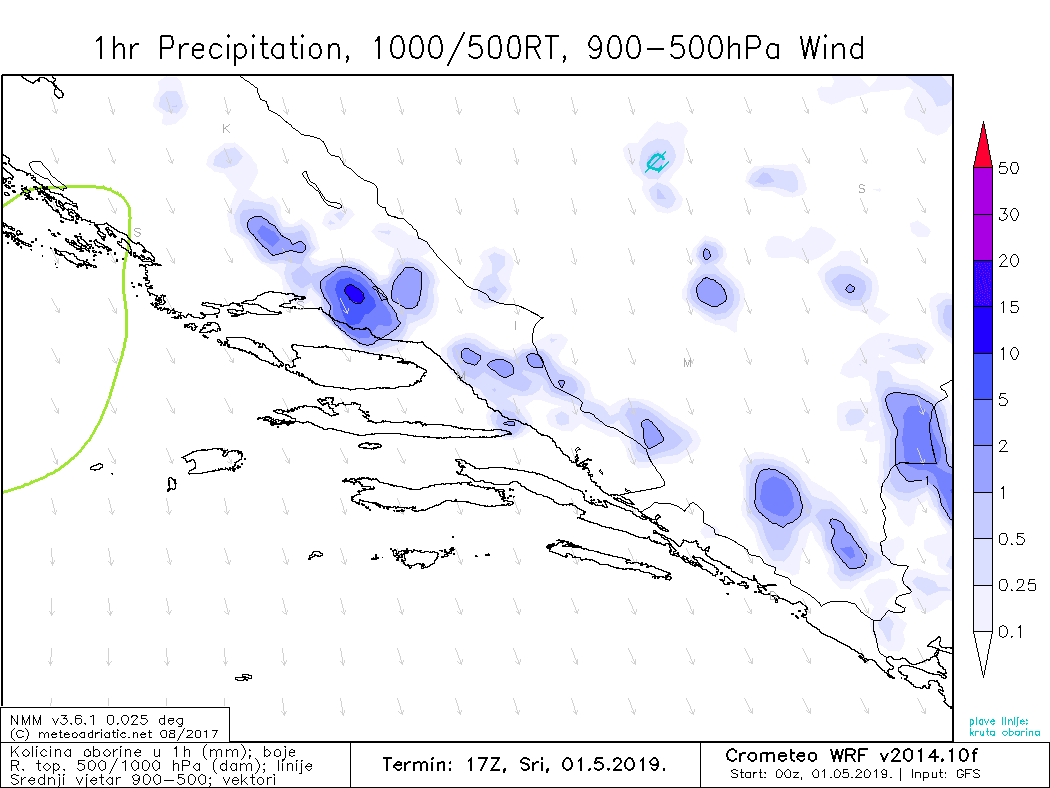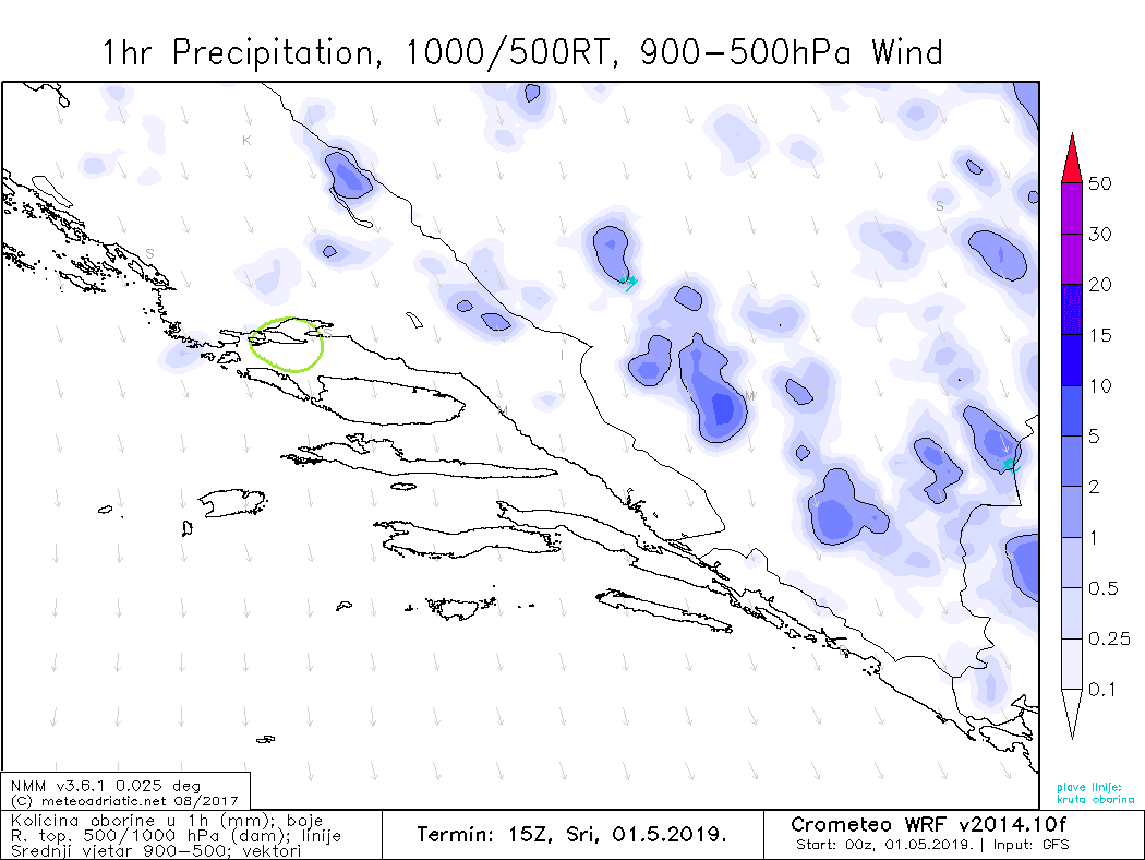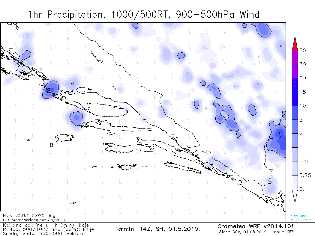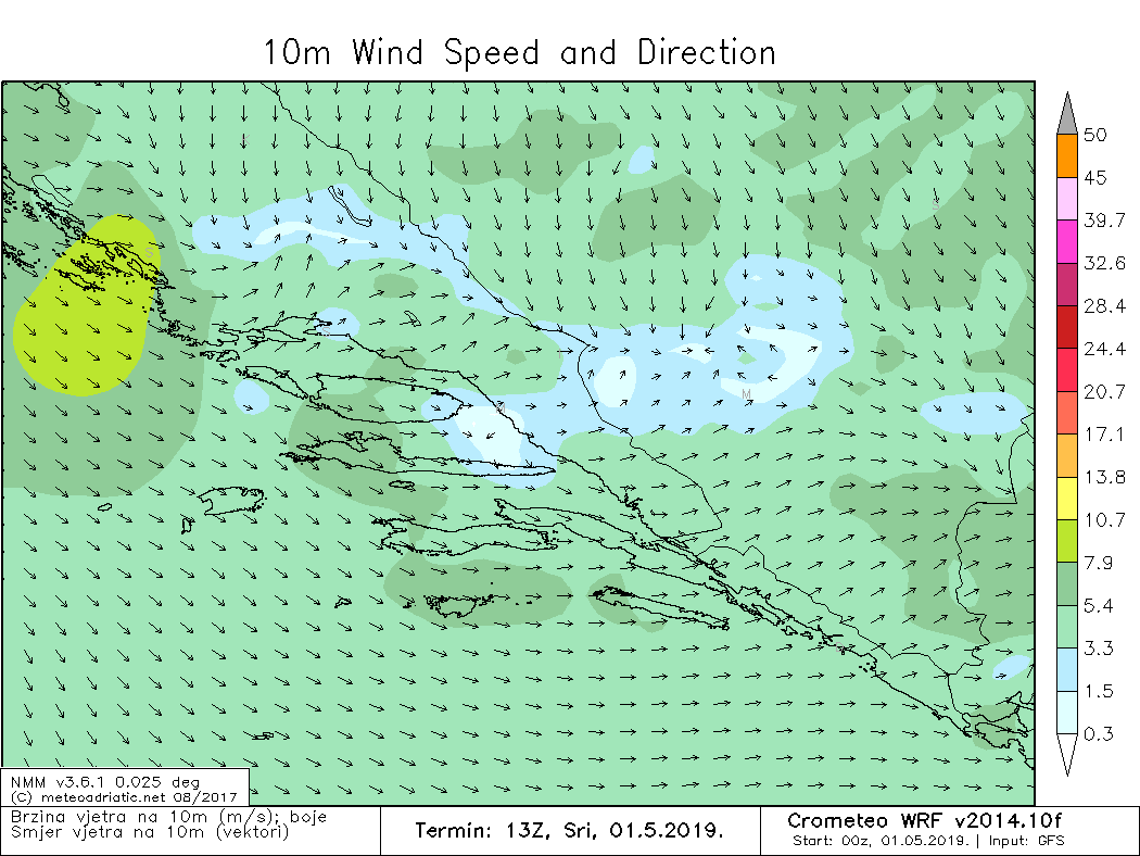 U nastavku pogledajte prognozu za Dalmaciju po satima od 12 sati do večeri.
