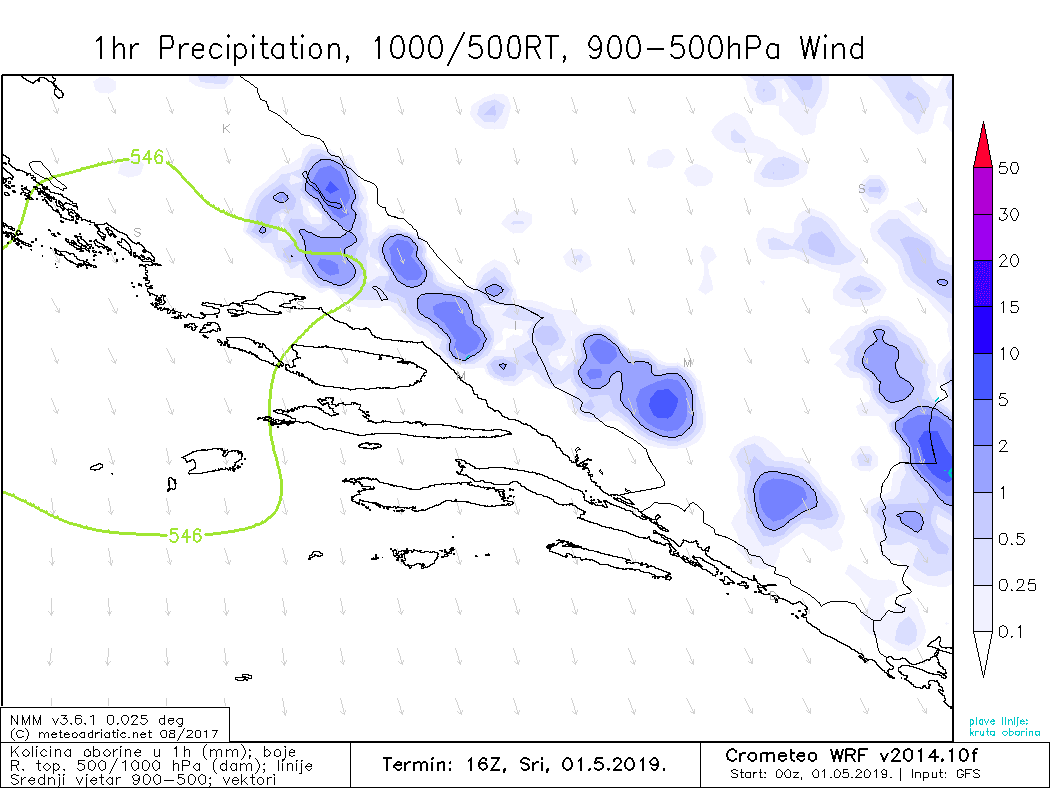 OBORINE (bijelo područje bez oborine, plavo oborine