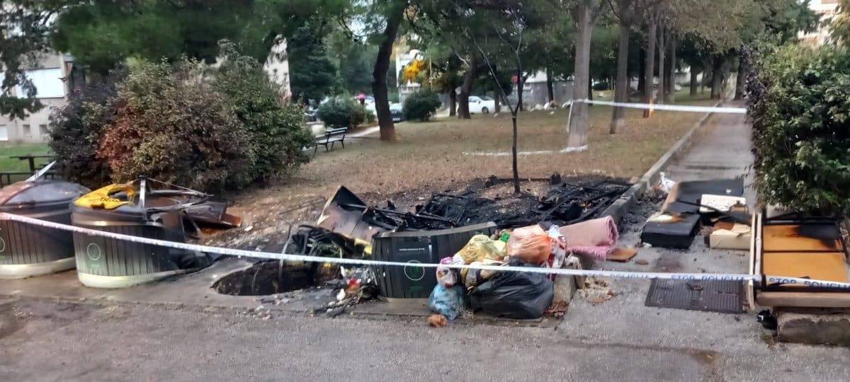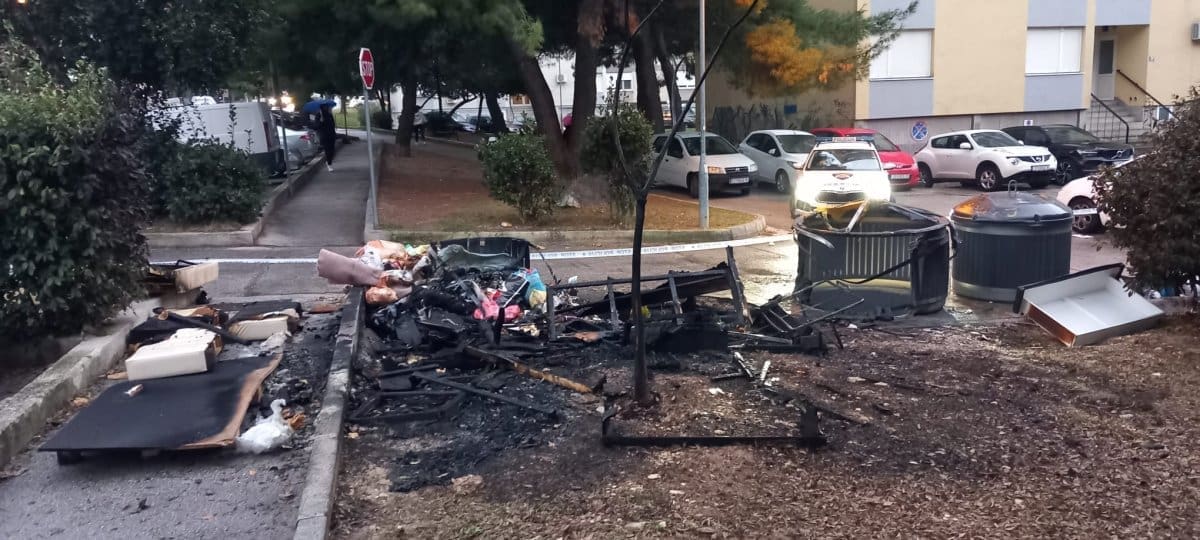 Sinoć oko 23.35 sati zaprimljena je dojava da je u Vinkovačkoj ulici u Splitu došlo do izbijanja požara koji je zahvatio dva spremnika za odlaganje smeća.