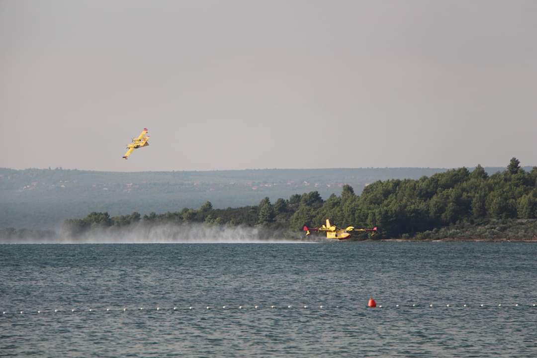 Na dva požarišta u Šibensko-kninskoj županiji sveukupno je angažirano šest protupožarnih aviona iz sastava Protupožarnih namjenski organiziranih snaga Oružanih snaga RH.