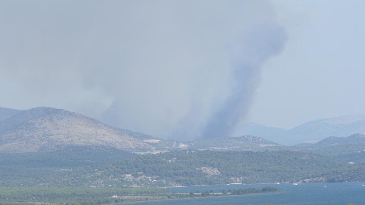 - Gori gusta borova šuma na potezu od Dubrave, prema Vrtnom centru i autocesti. Glavnina vatrene fronte tretirana je s kanaderima i airtractorima. Na terenu su sve snage s područja Šibenika i susjednih općina i gradova. Kuće zasad nisu ugrožene, iako je vatra na stotinjak metara od nekih objekata, no u prilog nam ide južni smjer vjetra, što ne znači da se situacija neće promijeniti. Najugroženija je autocesta A1, tražimo i zatvaranje zbog dima, a na nekim mjestima je već i vatra prebacila – kazao je Volimir Milošević, zapovjednik JVP Šibenik.