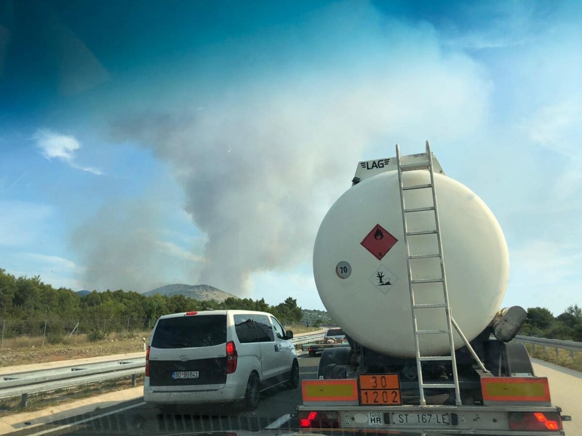 Zbog požara i dima koji prijeti autocesti, vatrogasci su Hrvatskim cestama izdali preporuku da se taj dio autoceste zatvori za promet. Iz HAK-a je stigla obavijest da je za sav promet zatvorena autocesta Šibenik – Vrpolje u oba smjera.