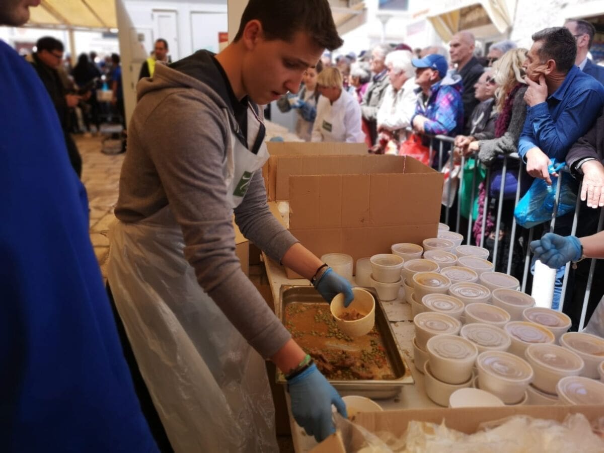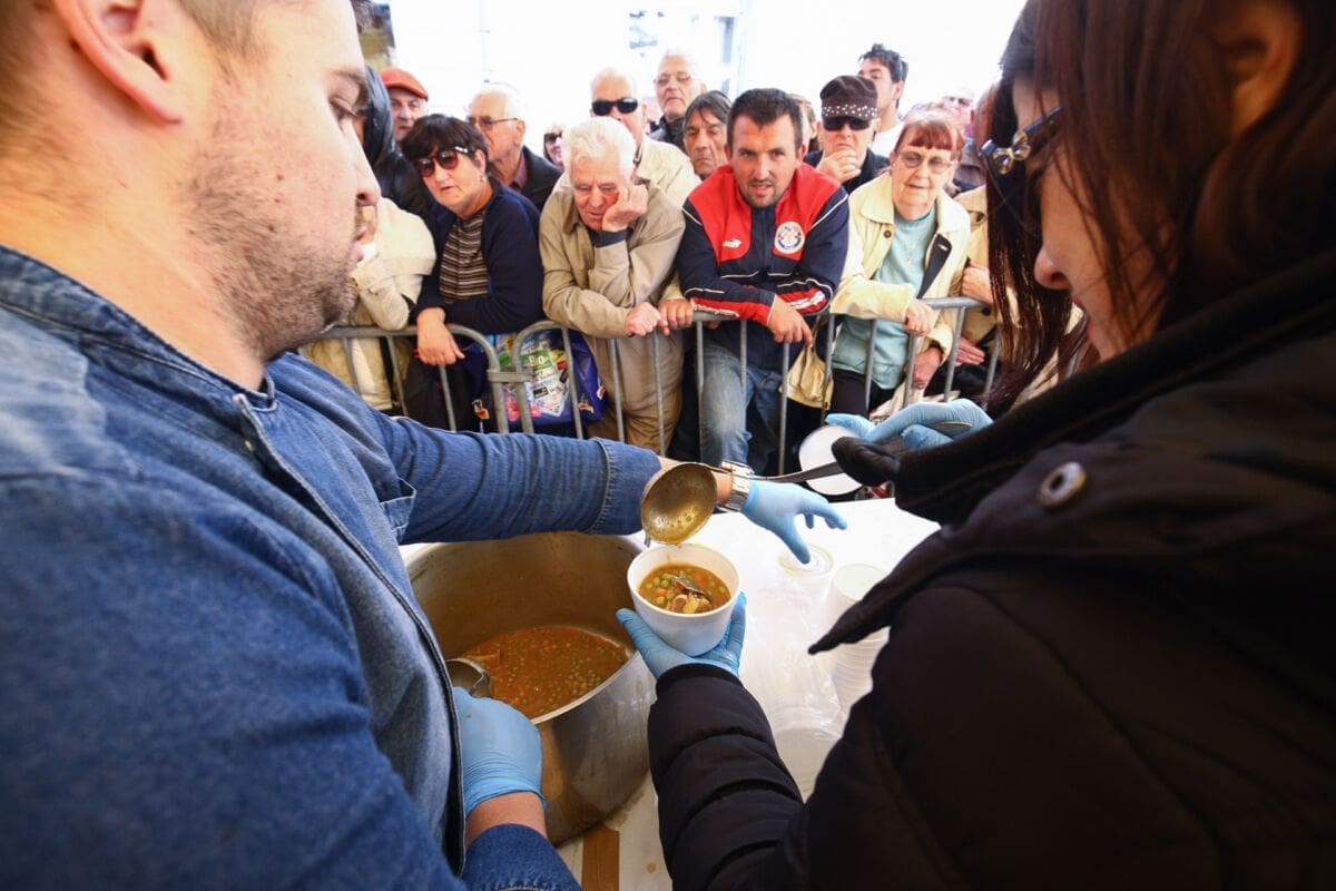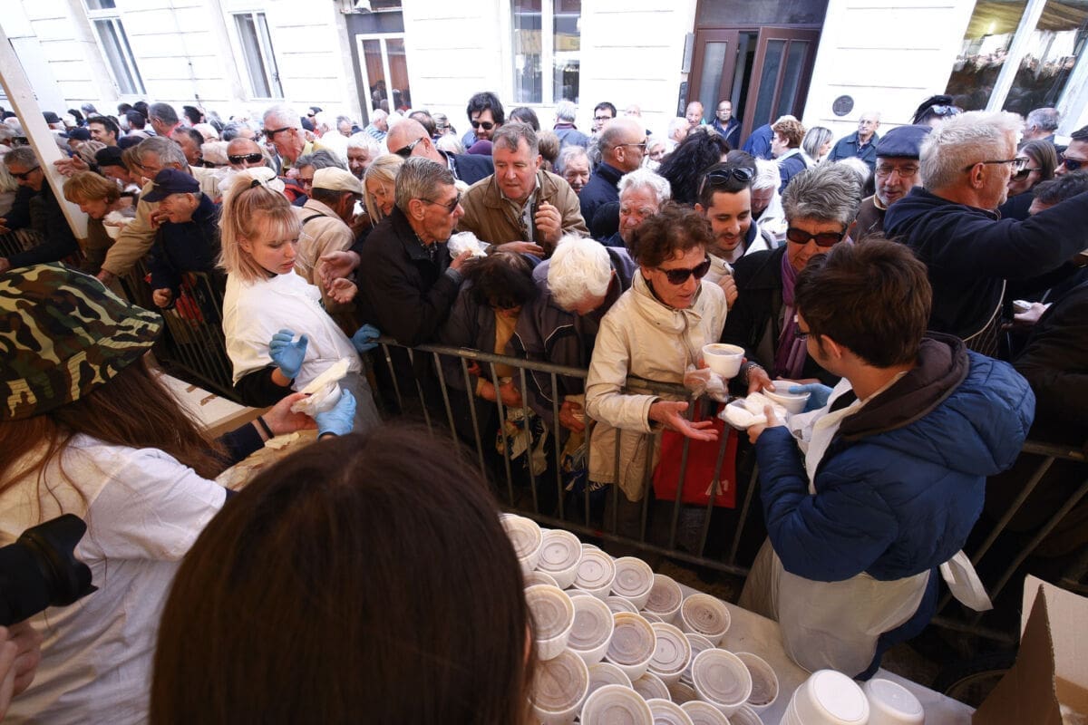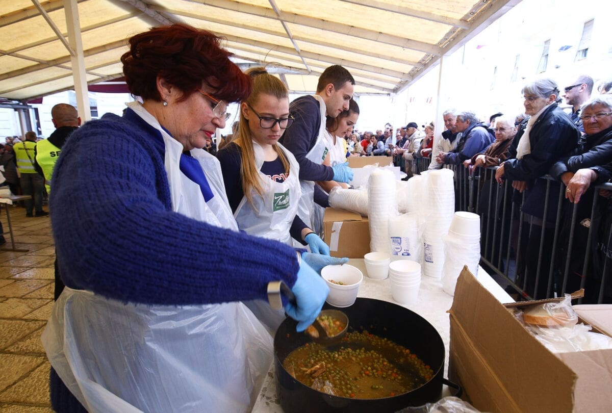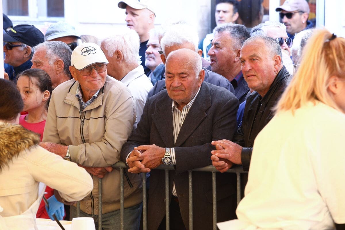Na splitskoj Peškariji je oko 12 sati počela tradicionalna podjela oko pet tisuća porcija janjetine s bižima.