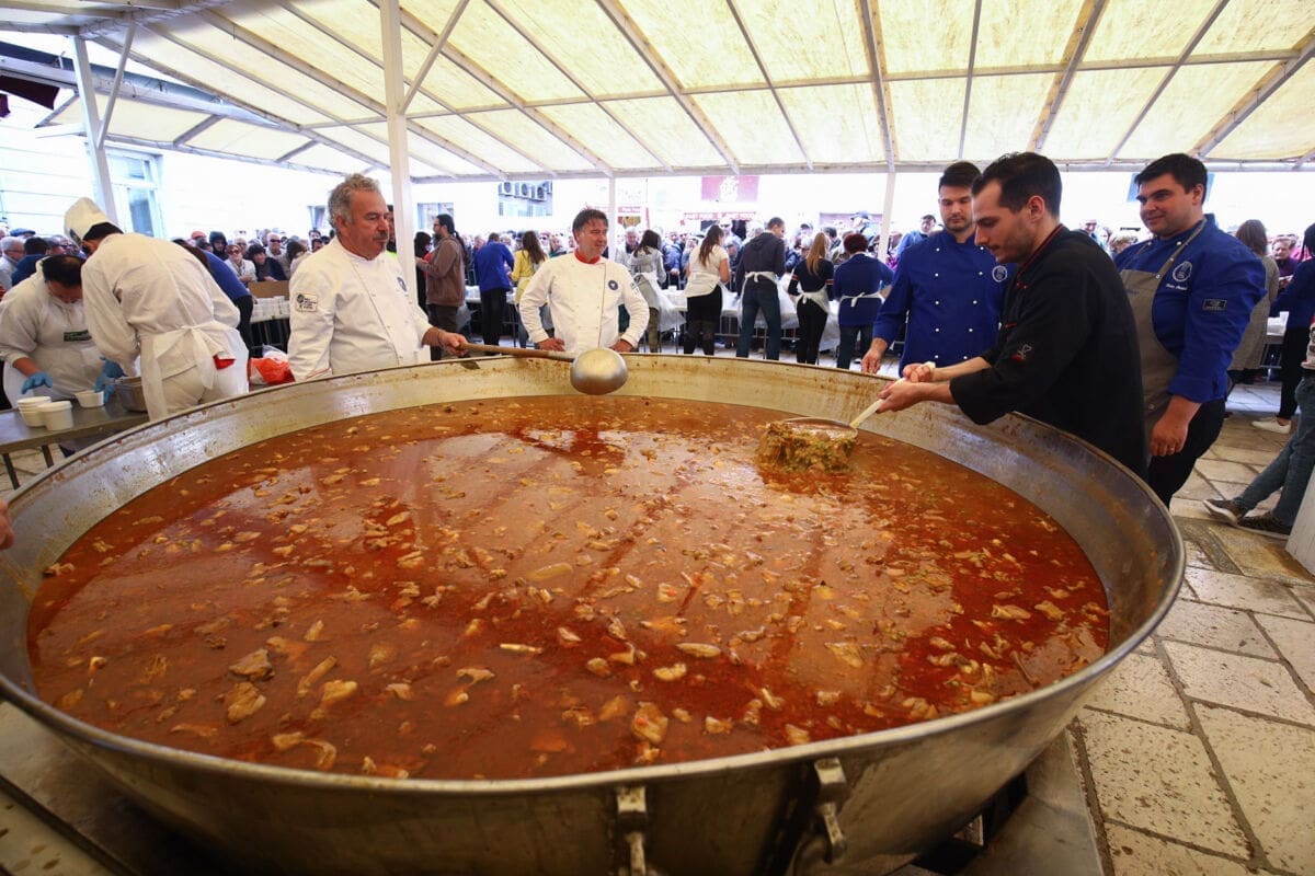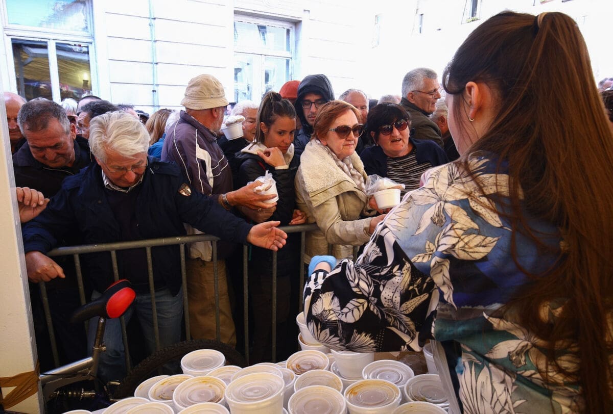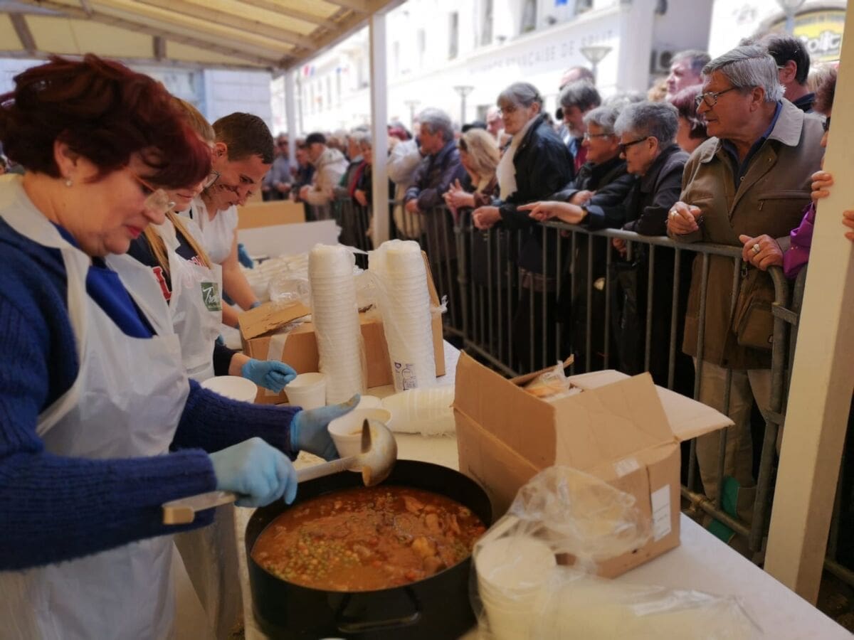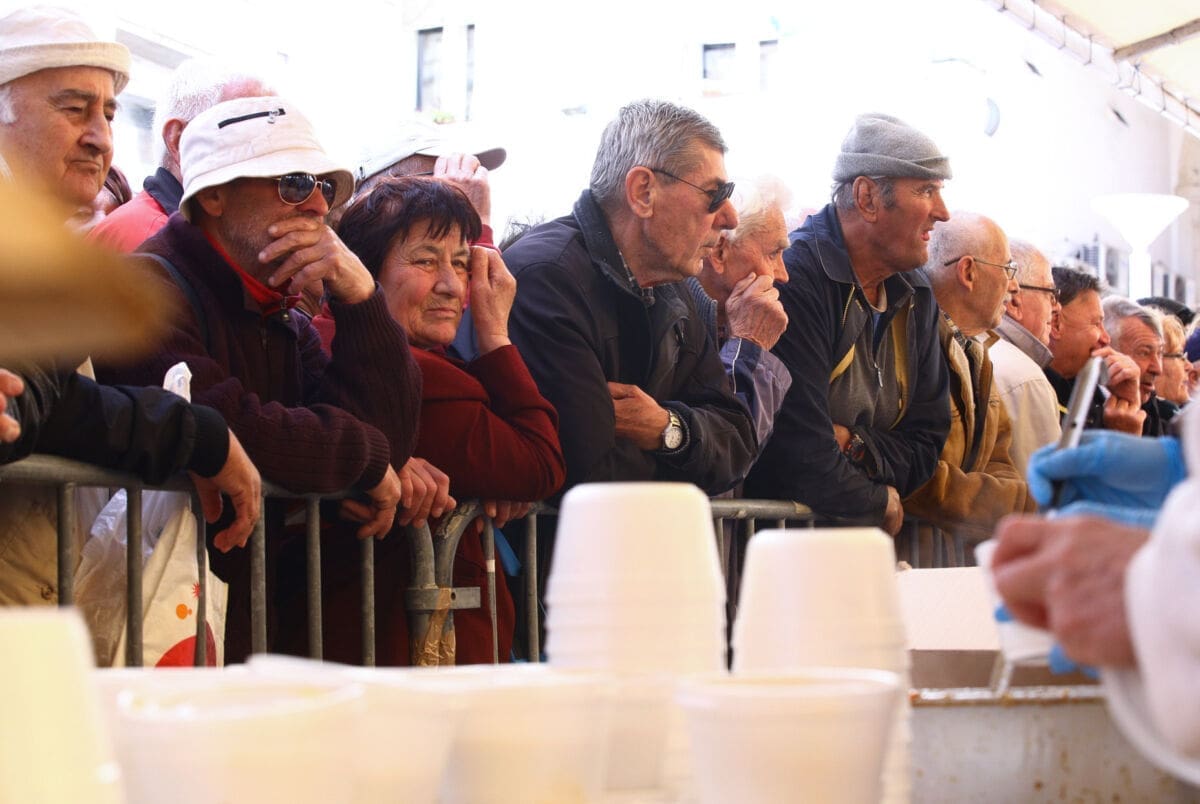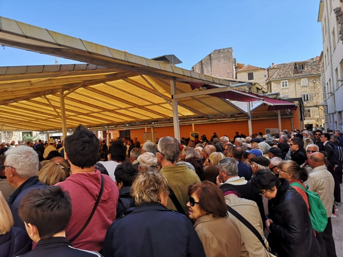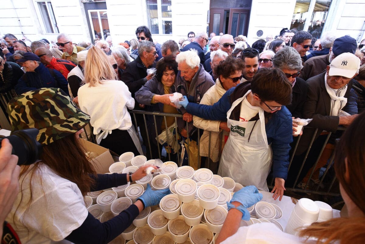 Na splitskoj Peškariji je oko 12 sati počela tradicionalna podjela oko pet tisuća porcija janjetine s bižima.